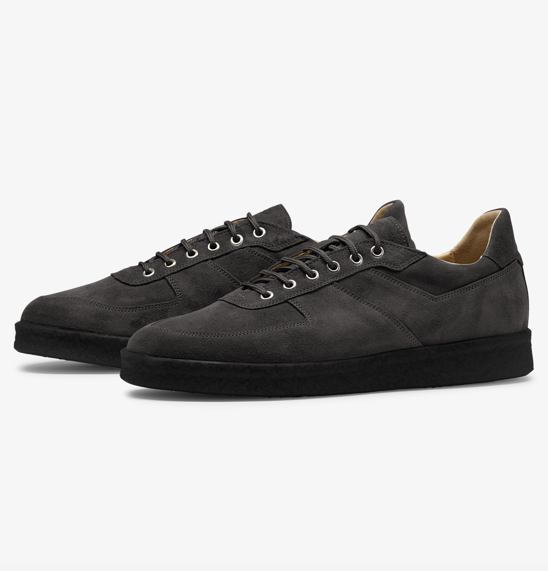 今回戸賀さんが選んだシューズは、ともにC.QP。スウェーデン・ストックホルム発のスニーカーブランドで、スマート&シンプルなデザインと、大人向けのカラーバリエーションで話題のブランドです。レースアップタイプの「TARMAC」は、ローカットとミドルカットの中間的なフォルムが特徴的な、ブランド誕生時のアイコン的なモデル。スリッポンタイプの「JETTY」は、ミニマルな足元を演出する大人スニーカー。ともに上質なスエードアッパーに、ホワイトソールを組み合わせた、B.R.SHOPの別注モデルです。