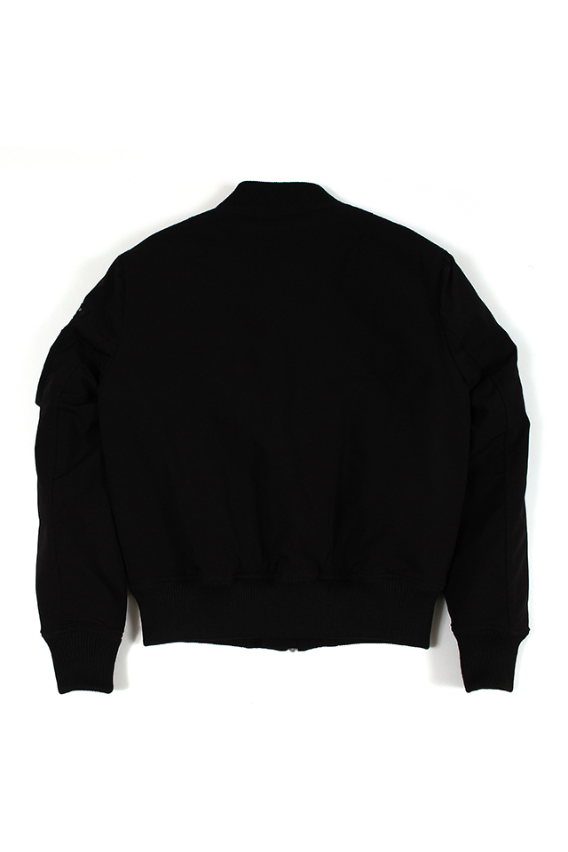 フロントにジップクロージャー、フラップ付きの脇ポケット2つ、袖にジップポケット1つ。