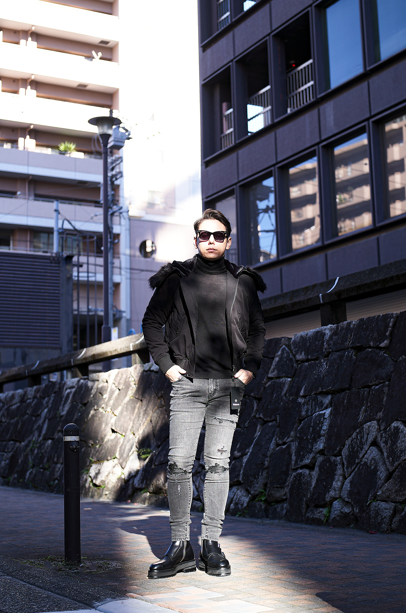 フロントにジップクロージャー、フラップ付きの脇ポケット2つ、袖にジップポケット1つ。