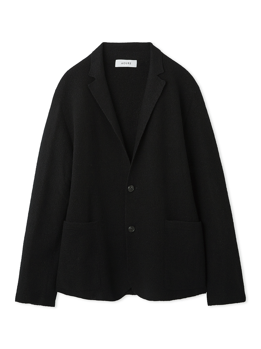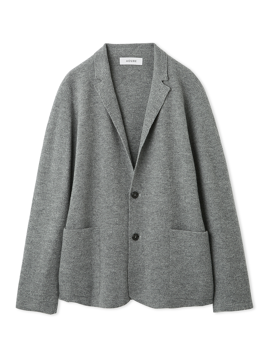 ジャケットらしい立体的なシルエットを出すためにパーツごとに編地を調整。