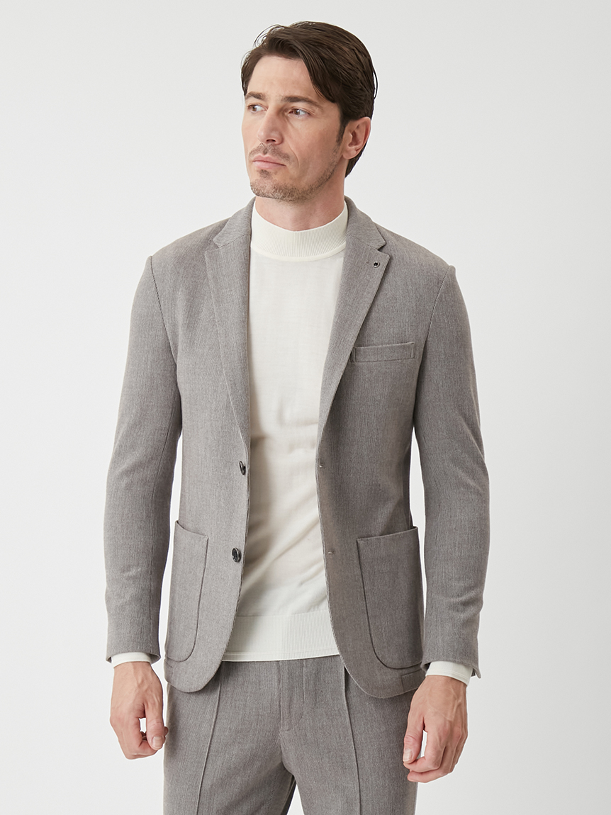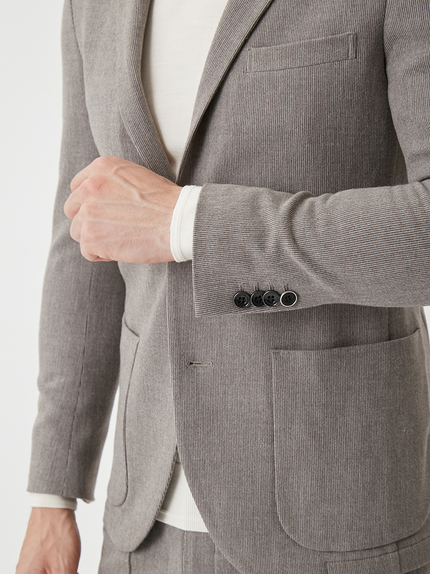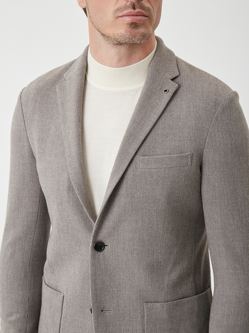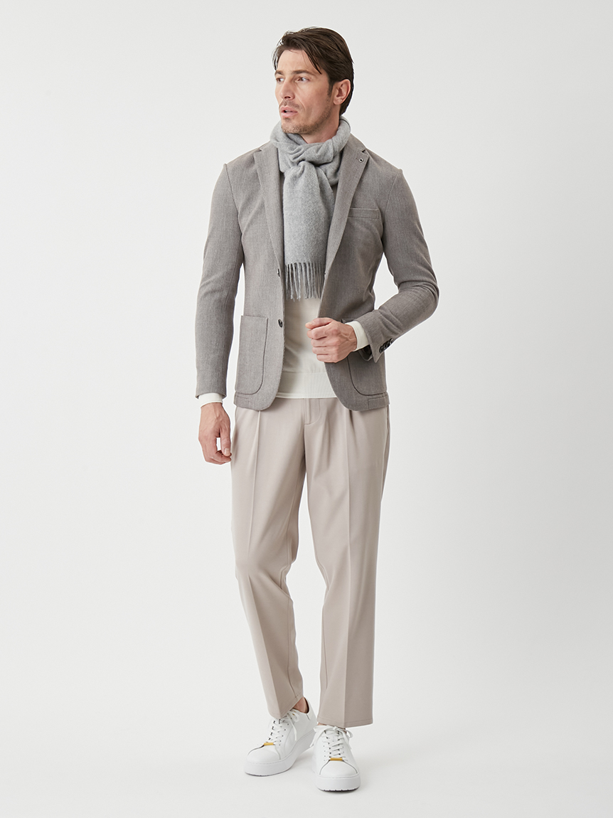 ほどよいストレッチ性も備えており、ジャケット素材としても映える生地です。