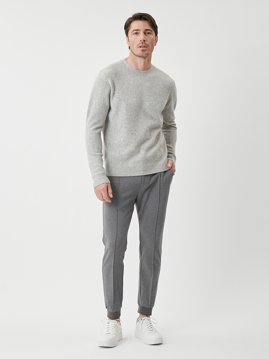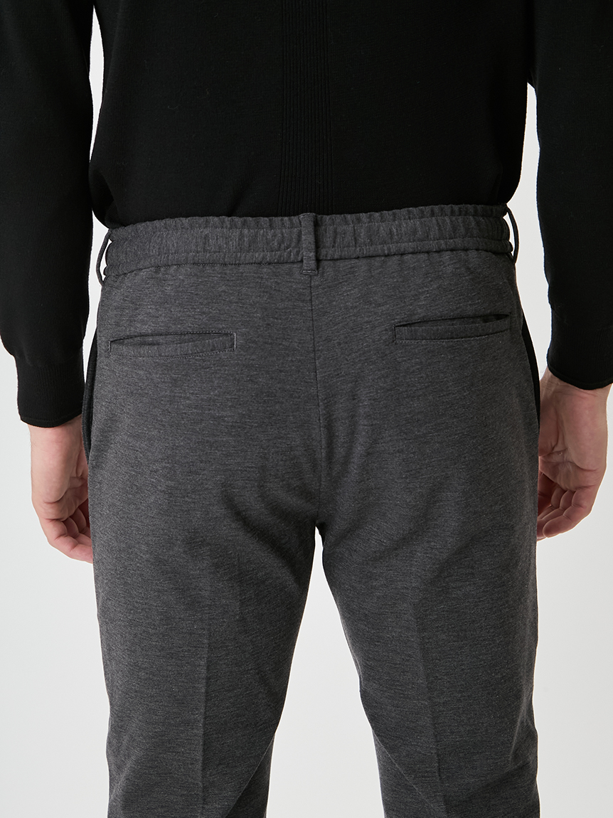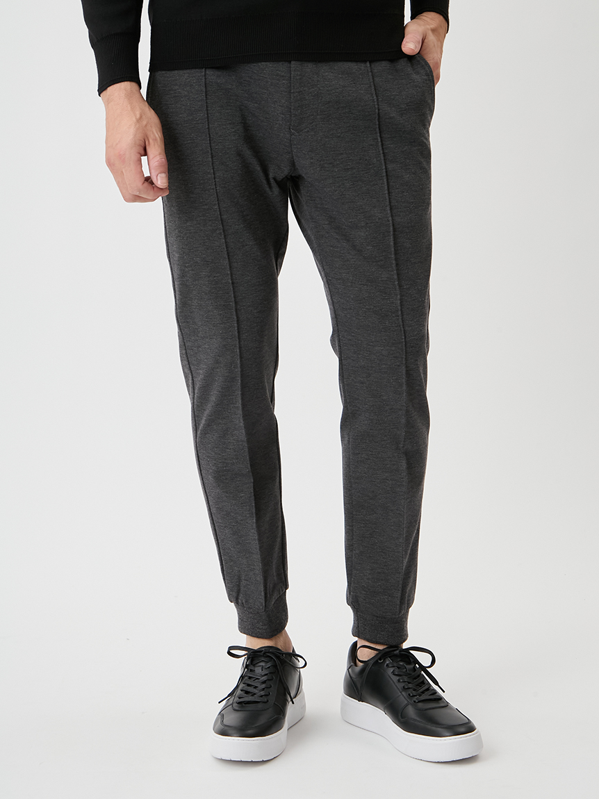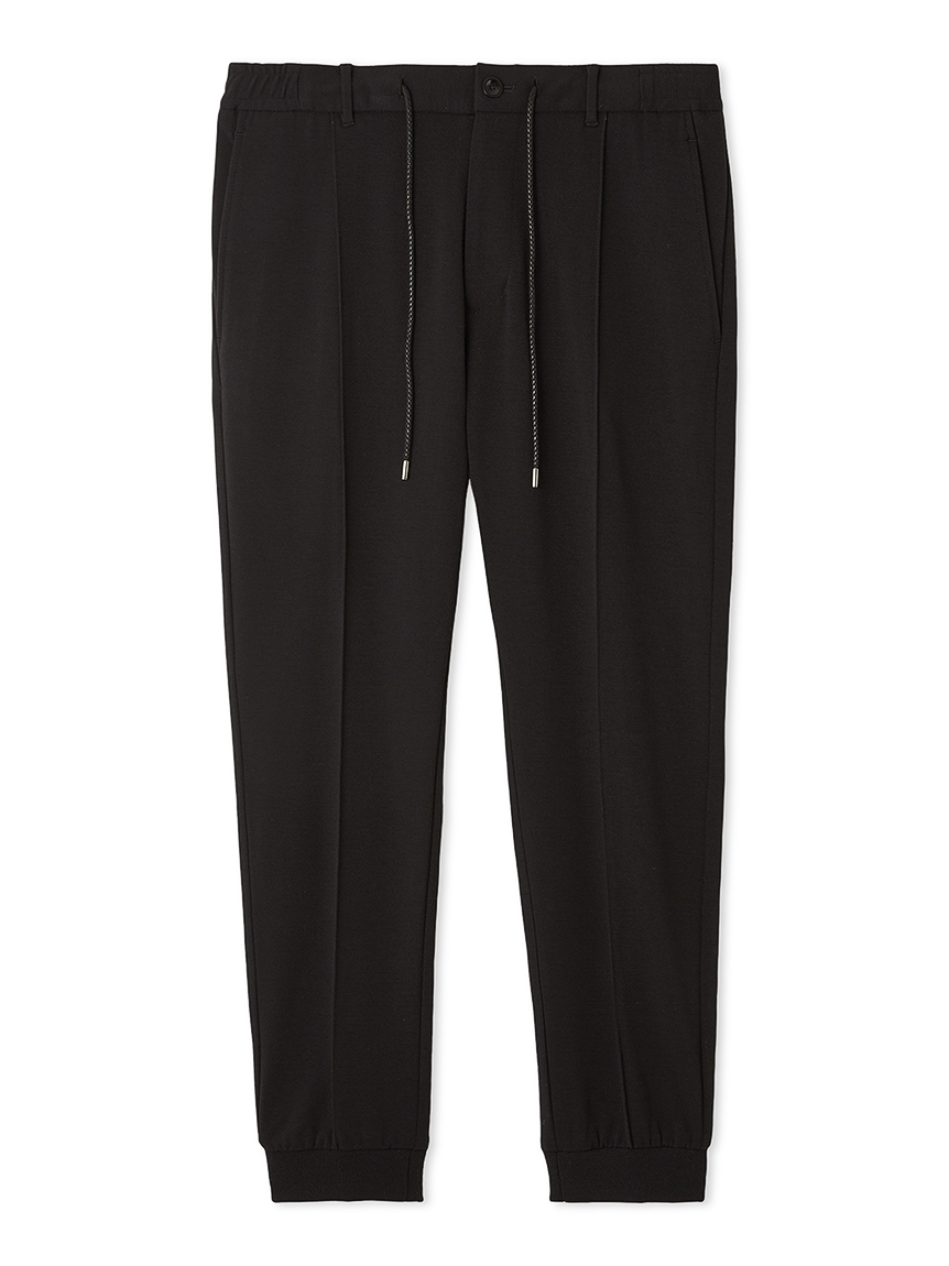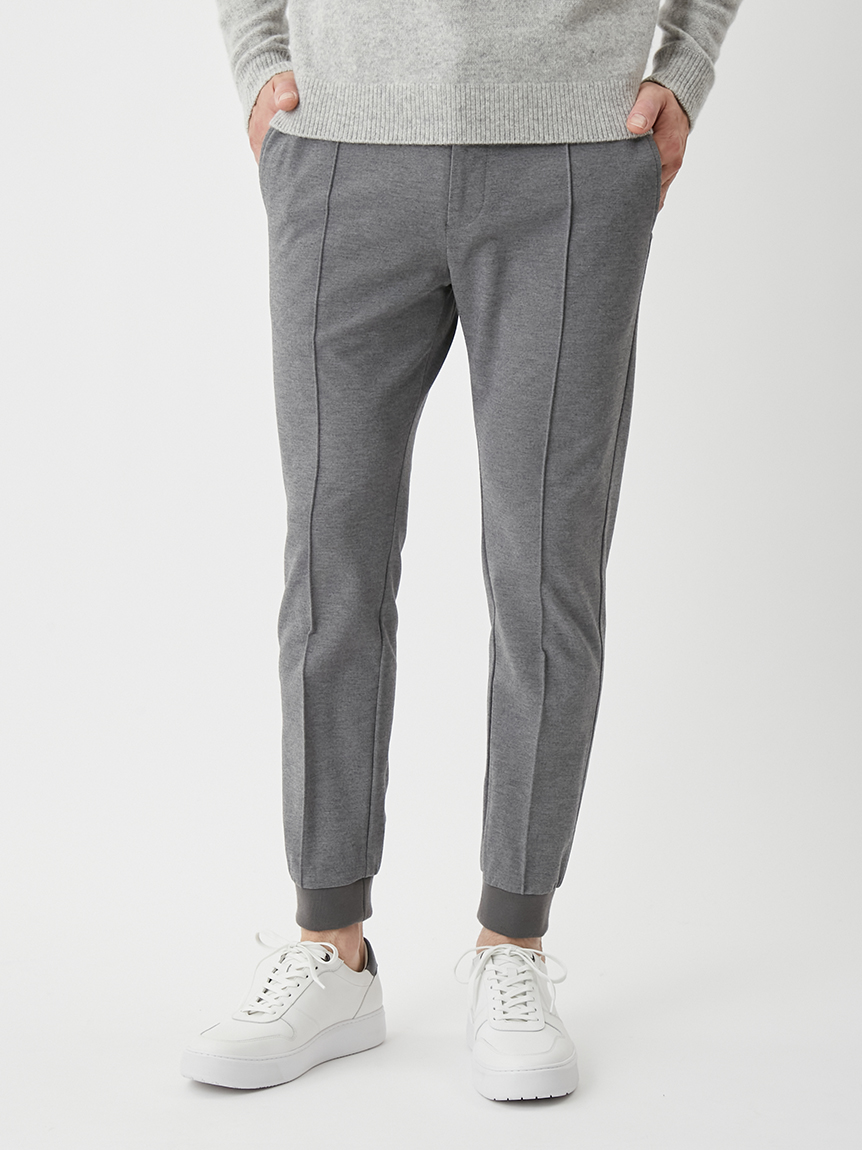 すっきりとしたテーパードシルエットとピンタックのセンタークリースが脚を美しく見せ、