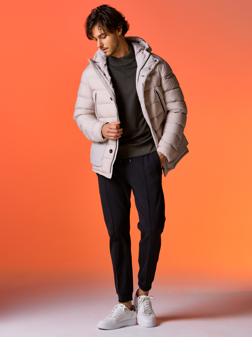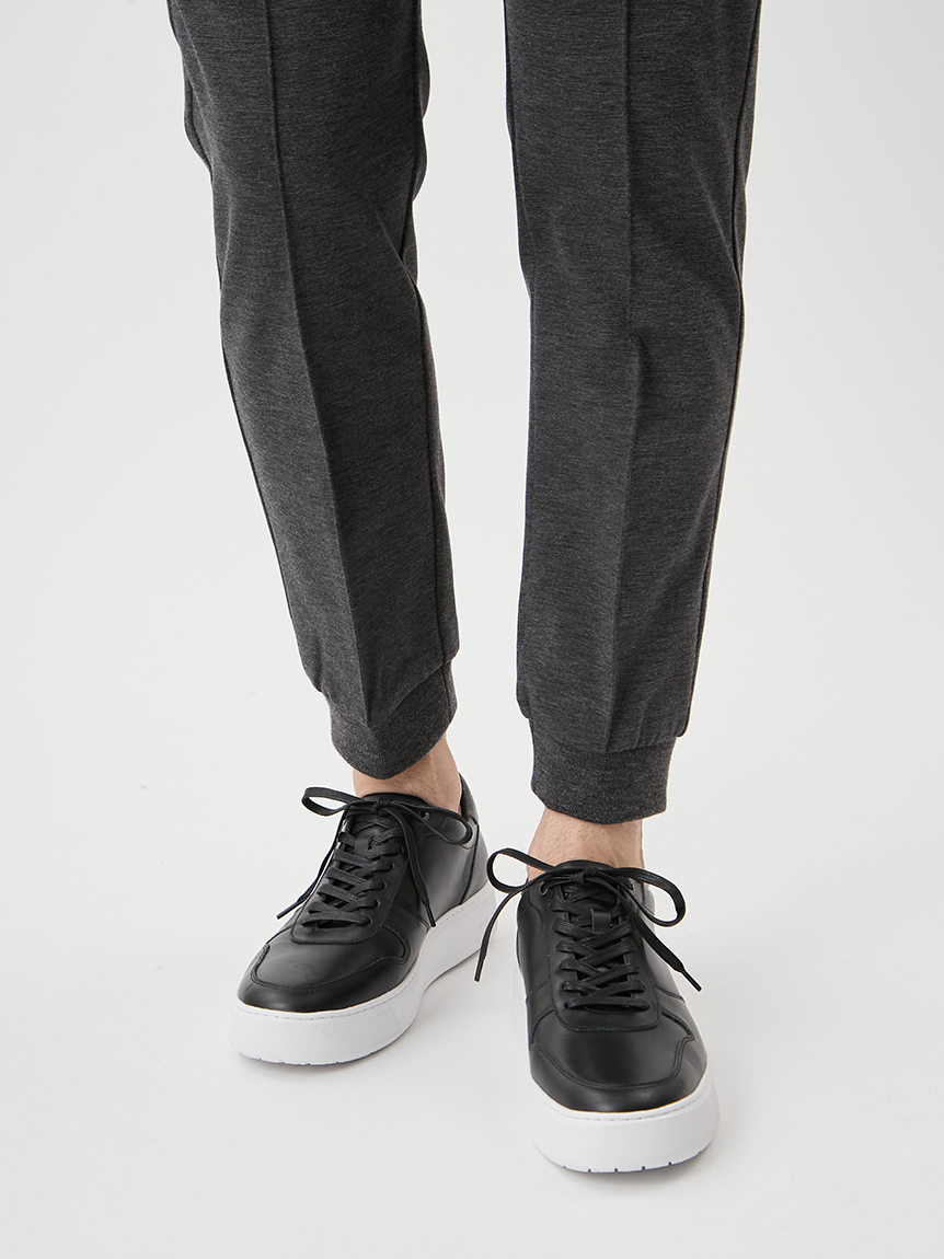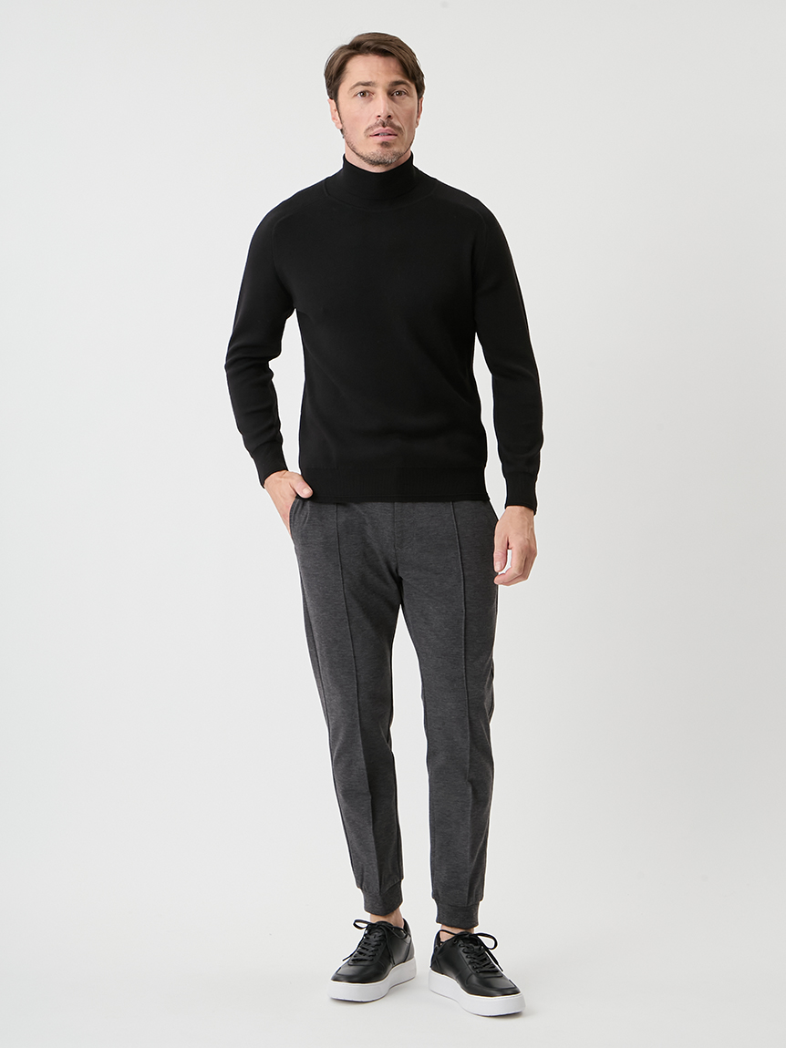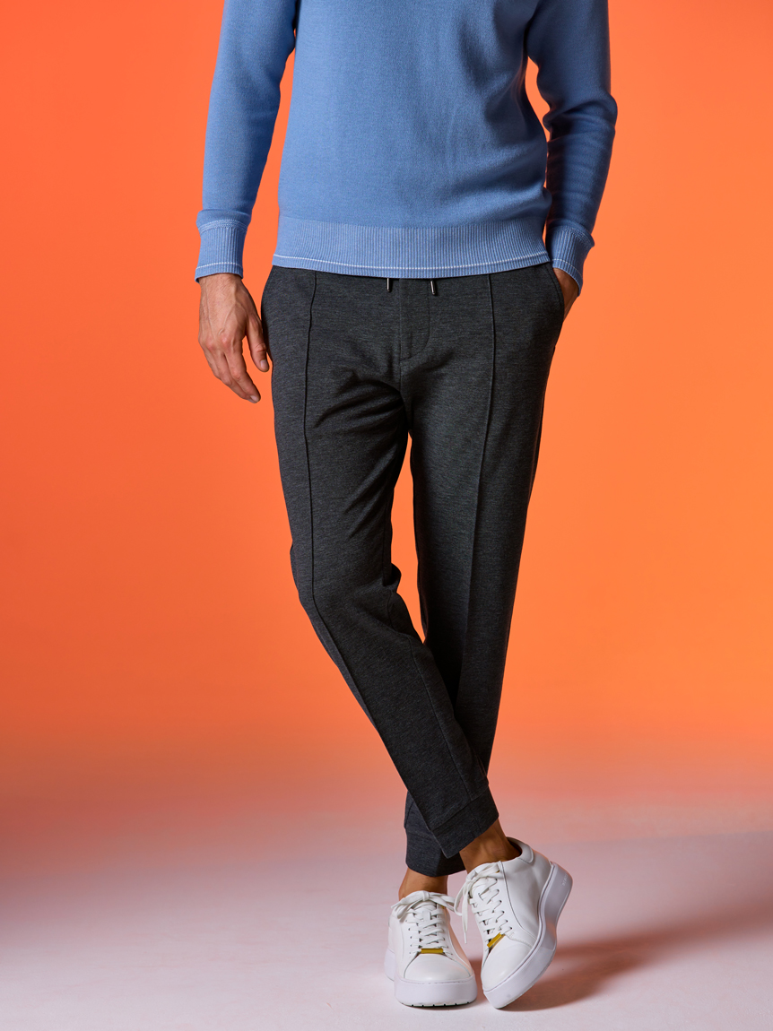 スタイルアップと快適さを兼ね備えたリブパンツ。