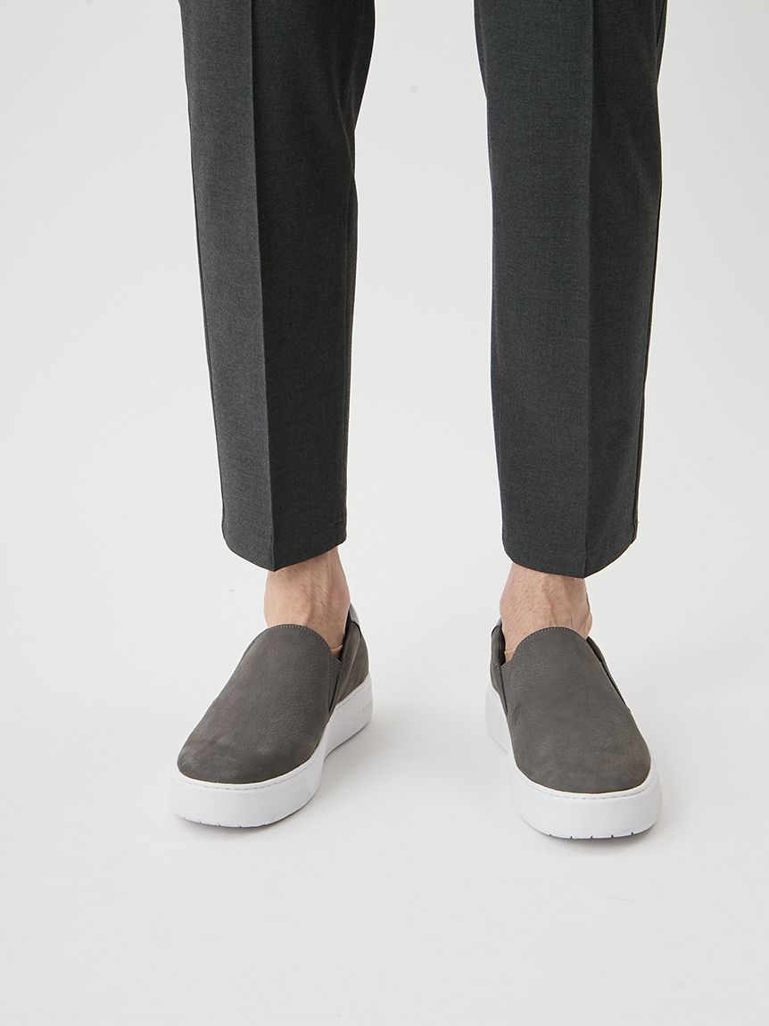 足元は変わらずすっきりとしているので、革靴やスニーカーなどアイテムを選ばずに穿ける仕上がりに。