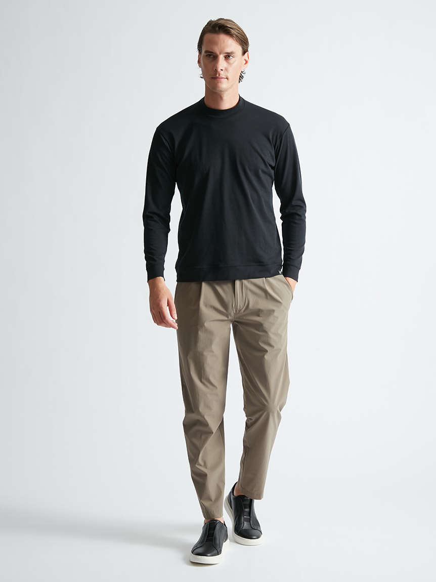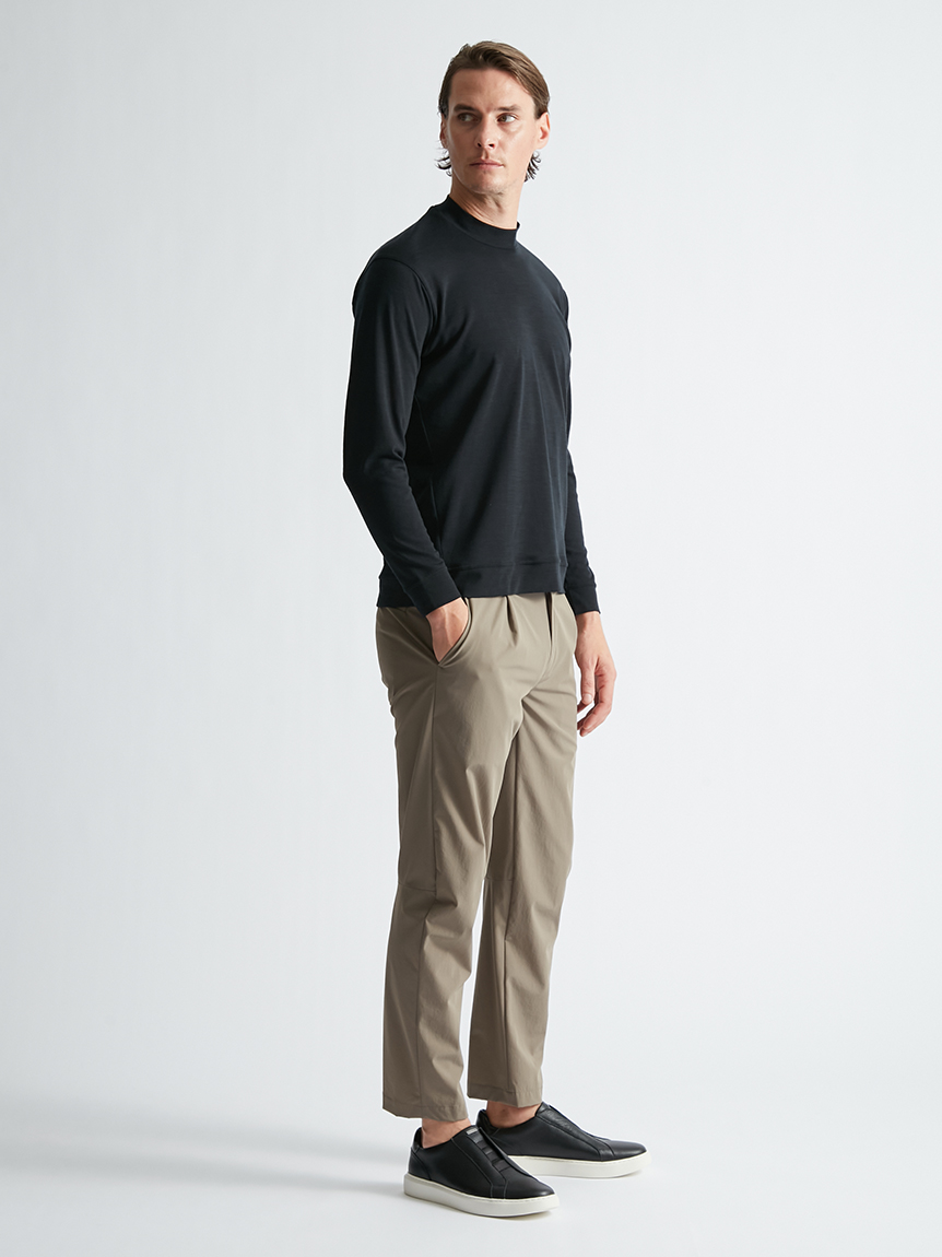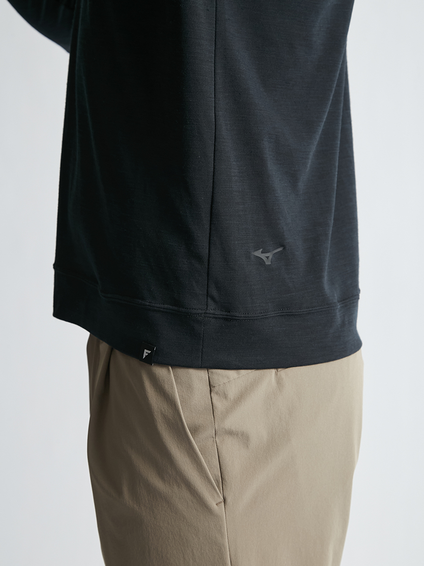世界初※1のメリノウール W認証※2を受けたミズノ独自の『 365オールインワン』素材 を使用し、上品な着用感と汗をかいてもサラっと快適な着心地を提供します。洗濯・乾 燥機も使用可能でお手入れも楽です。柔らかな肌触り、高い通気性と吸水速乾性を備え、春夏はジャケットのインナーとして、秋冬はアンダーウエアとして活躍します。