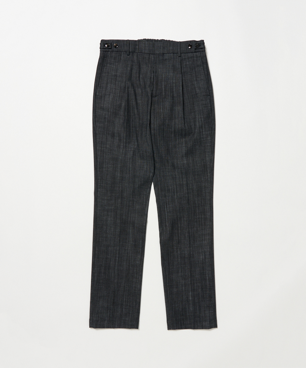 ウエストにシャーリングを施し、1プリーツを入れることで、程よいリラックス感と上品さを両立した一本です。