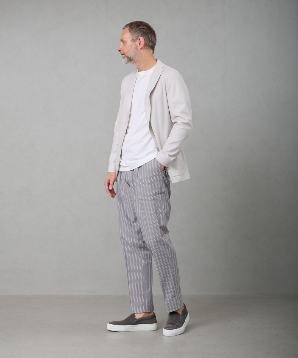 ドレススタイルの品格と快適な快適さを併せ持った、新感覚のジャケット。気張らず着られて、しっかりサマになる。大人のスタイルに、さりげない完成度を添えてくれます。