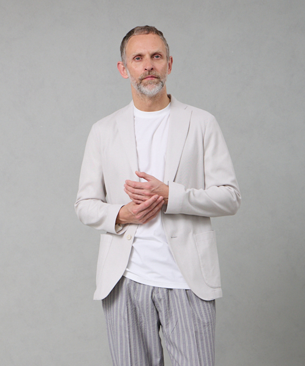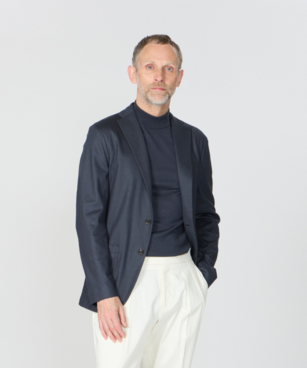 ブランドのアイコンモデル「DOVER(ドーバー)」をベースに、筒袖やラペル部分の芯、胸ポケットを省くなど、仕立ての軽さを追求し、まるでカーディガンのような軽さを実現。それでいて、見た目はしっかりジャケット。“ラクなのにきちんと見える”を自然に成立させてくれます。