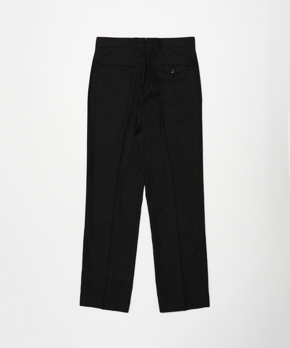 リネン55%×レーヨン45%の混合生地を使用し、春夏シーズンに適した軽やかな着心地を実現。リネン特有の清涼感に、レーヨンのしなやかな落ち感が加わることで、ラフになりすぎない上品な表情に仕上がっています。ブラックカラーは、程よくカジュアルダウンしつつも、外しすぎない大人のスタイリングを可能にします。