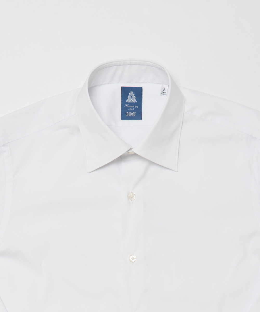 ポプリン採用。襟型はセミワイドカラーで、首まわりをすっきり見せつつネクタイの有無を問わず着用可能です。