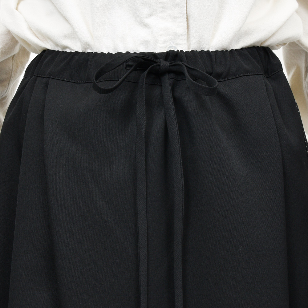 遊び心あふれるシルエットが魅力のウールパンツ。