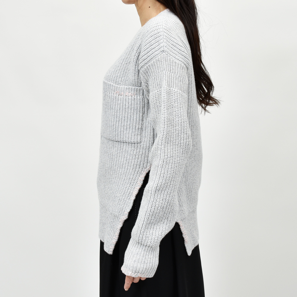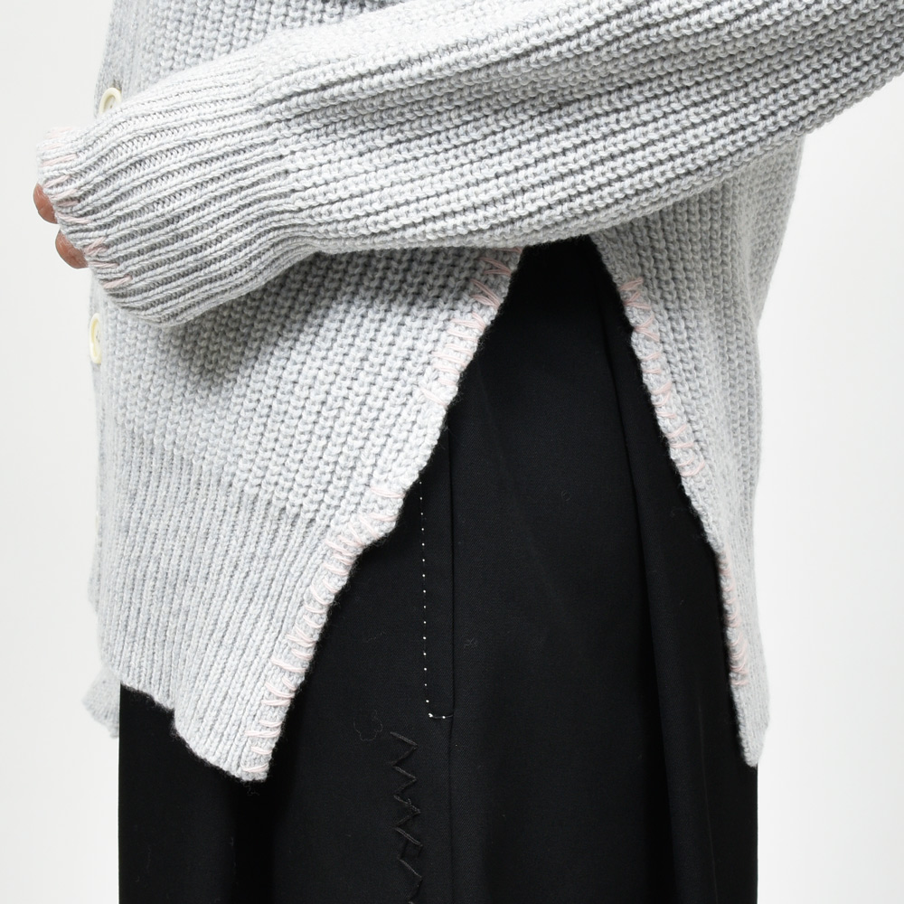 ざっくりとした風合いに未加工の裾やアシンメトリーなスリットディティールを組み合わせ、独自の表情を引き出しています。