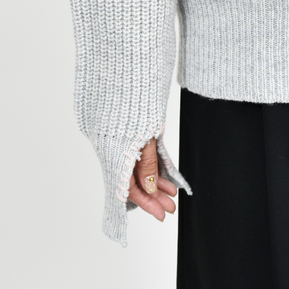 大きめの編み地で仕立てられており、リラックス感のある雰囲気を演出。