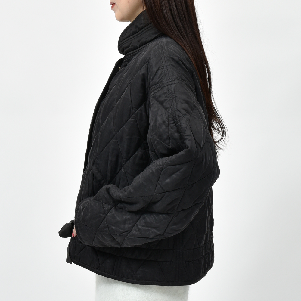立体的なキルティングステッチが表情を生み、シンプルながらも存在感のある一枚に仕上がっています。