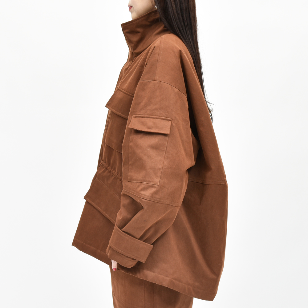 ミリタリー感あふれる立体的なシルエットが特徴のツイルブルゾン。