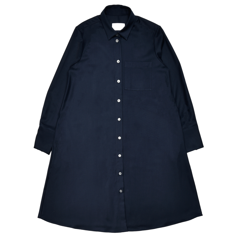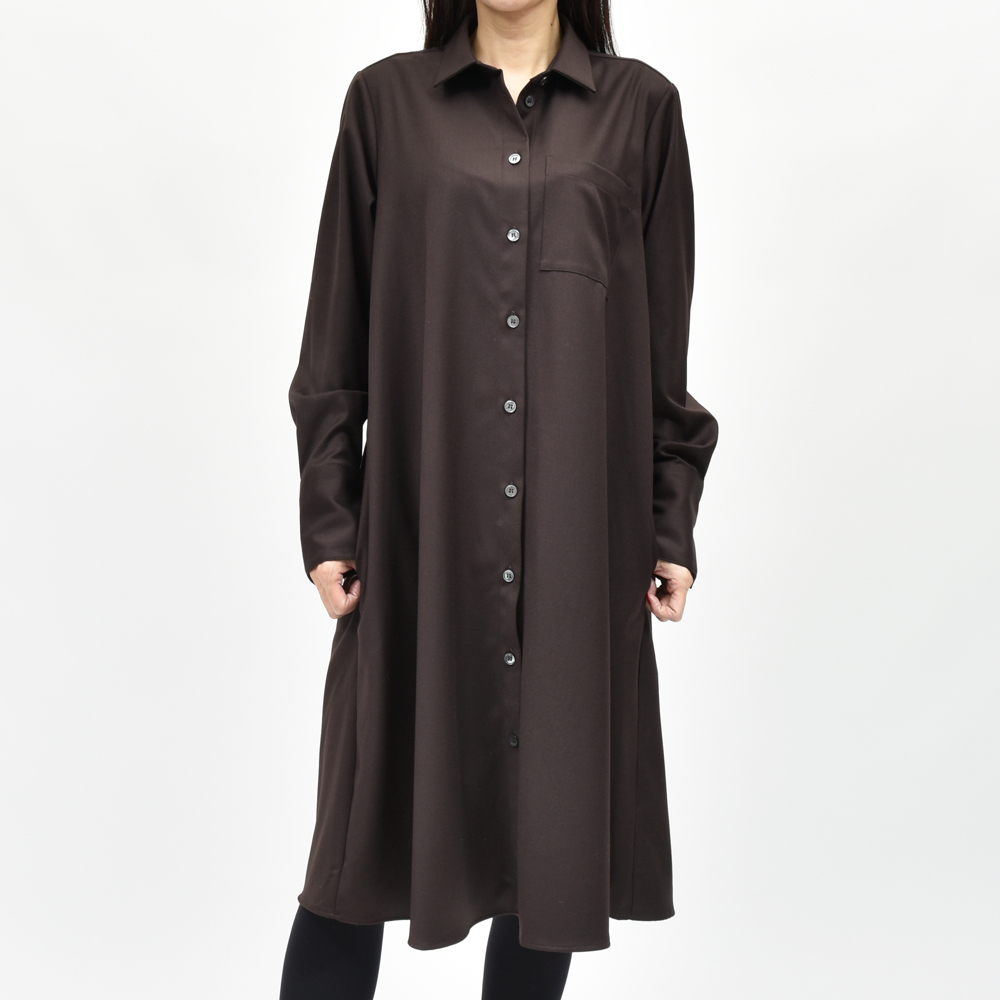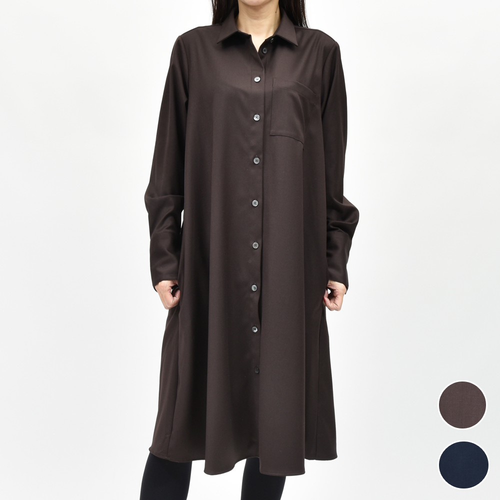 上質な素材感と美しいシルエットが魅力のシャツワンピース。