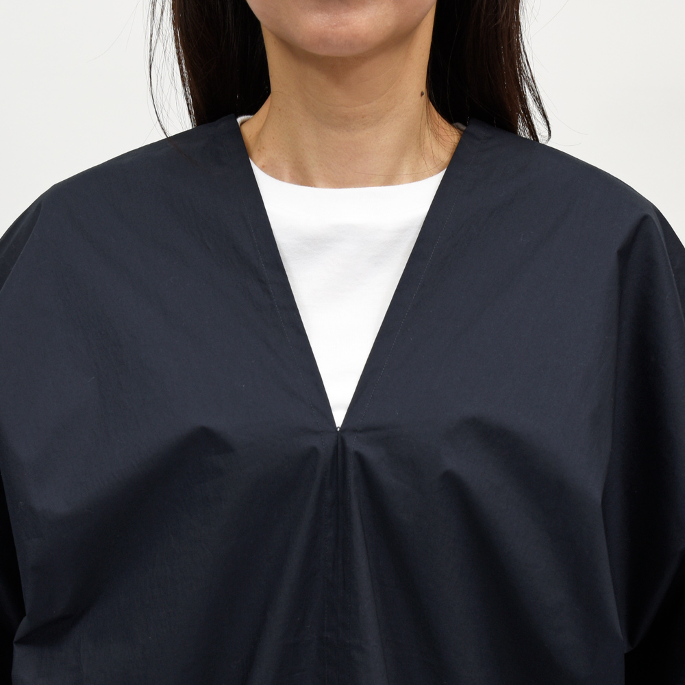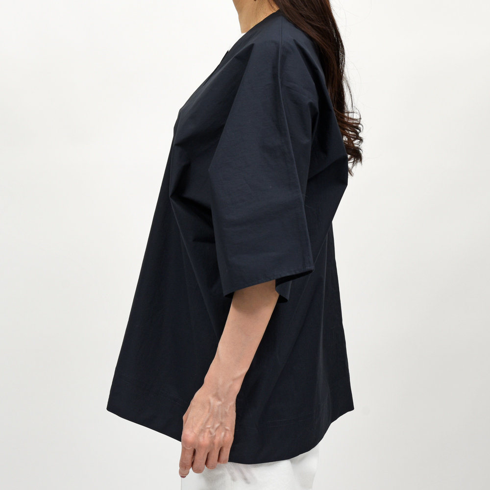 身幅はゆとりを持たせたシルエットになっており、直線的なパターンでラックス感のあるフォルムに仕上がっています。