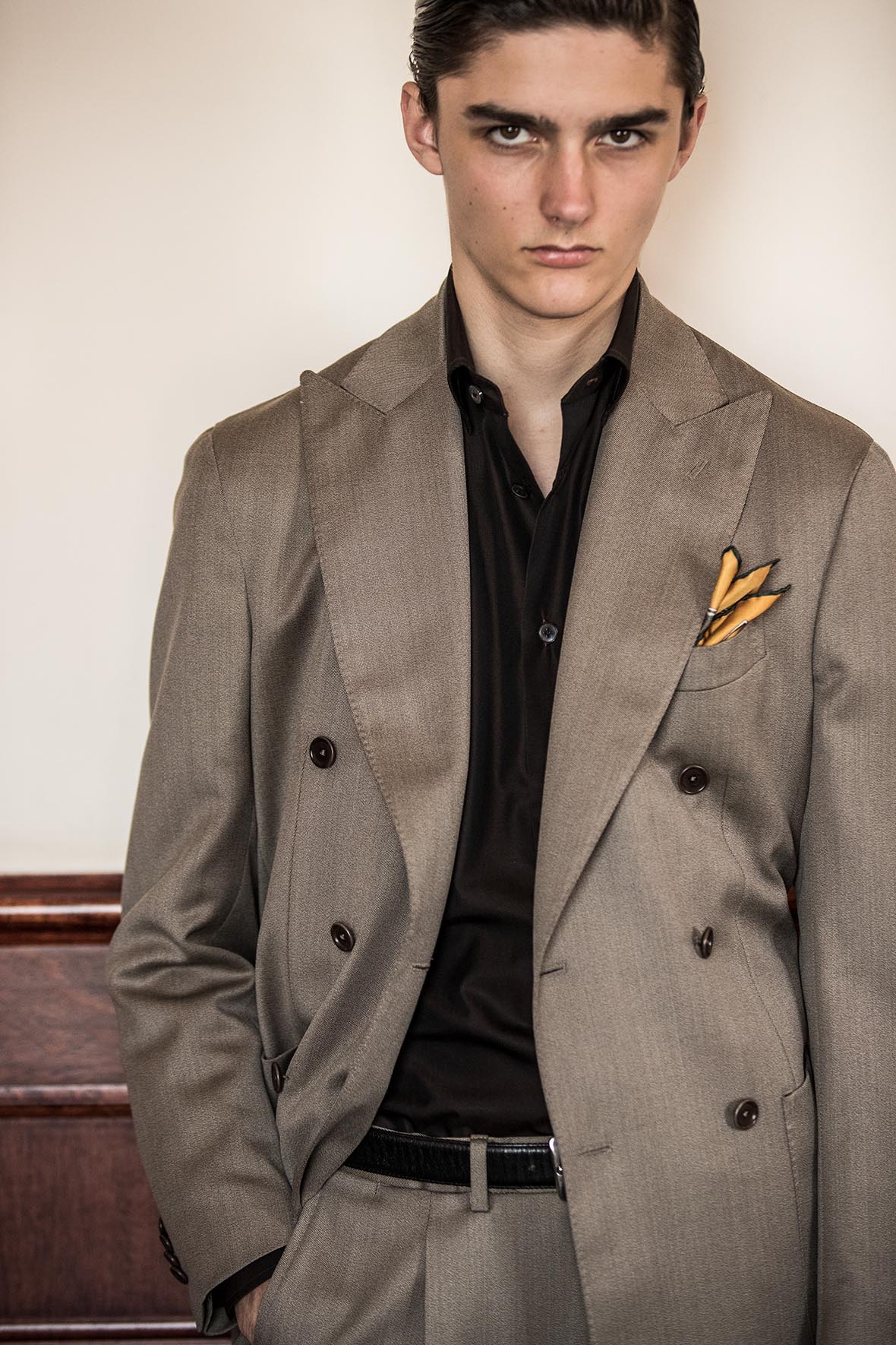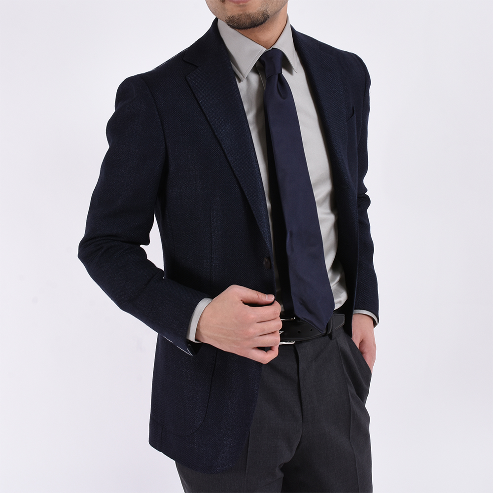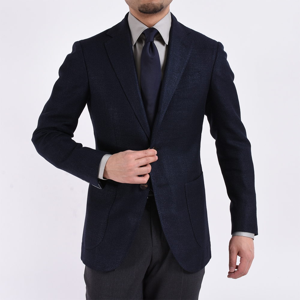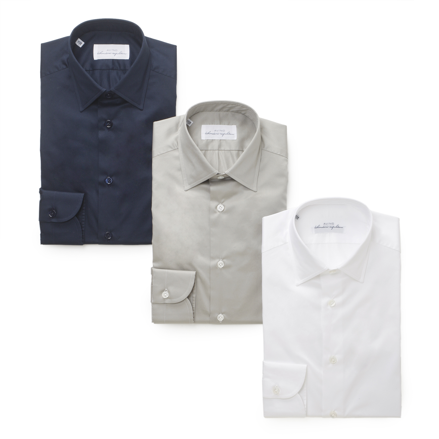 ・豊富なバリエーションを誇る「AVINO Laboratorio Napoletano(アヴィーノ・ラボラトリオ・ナポレターノ)」の襟型の中から、開きの角度が絶妙なイタリアらしいセミワイドカラー"ITALIA"をセレクト。タイドアップしない着方もオススメです。また、ソフトな芯地、ラウンドのカフス、ボタンの形状をB.R.SHOPが指定してオーダーしています。ネイビーのみトーンオントーンのボタンを付けたので、カジュアルシーンに、そしてちょっとしたパーティーにもどうぞ。