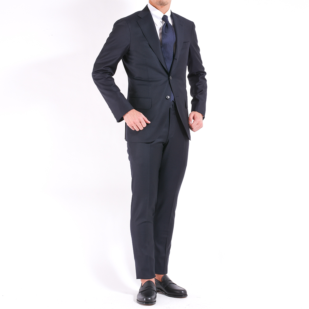 ・しなやかで艶やかなこちらの生地は、まさにオールラウンダー。フォーマルな席からビジネスシーンまで幅広く着ることができます。ダークネイビーとグレーの2色でご用意しました。
