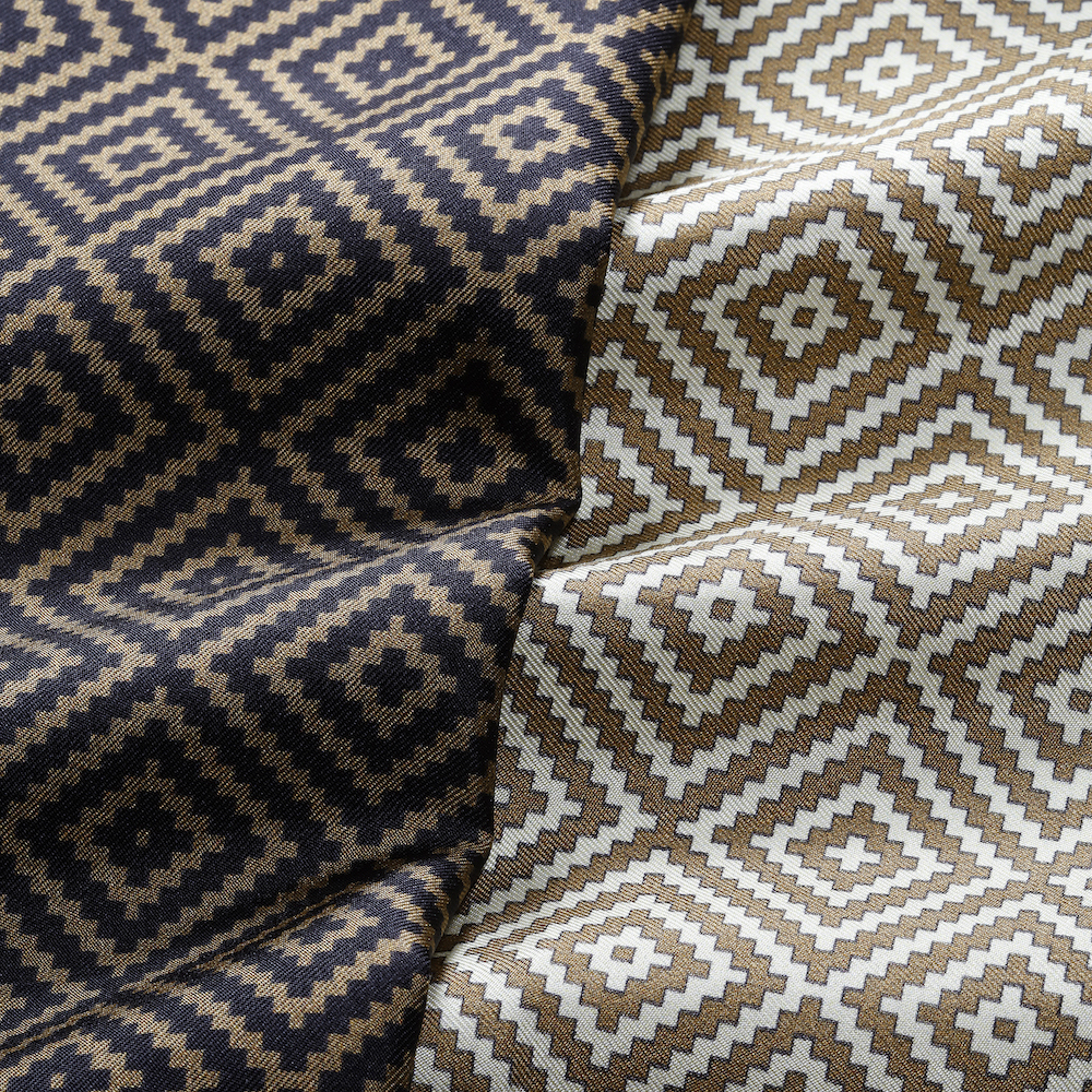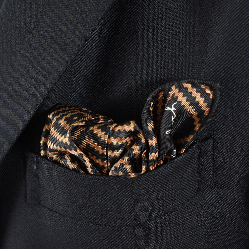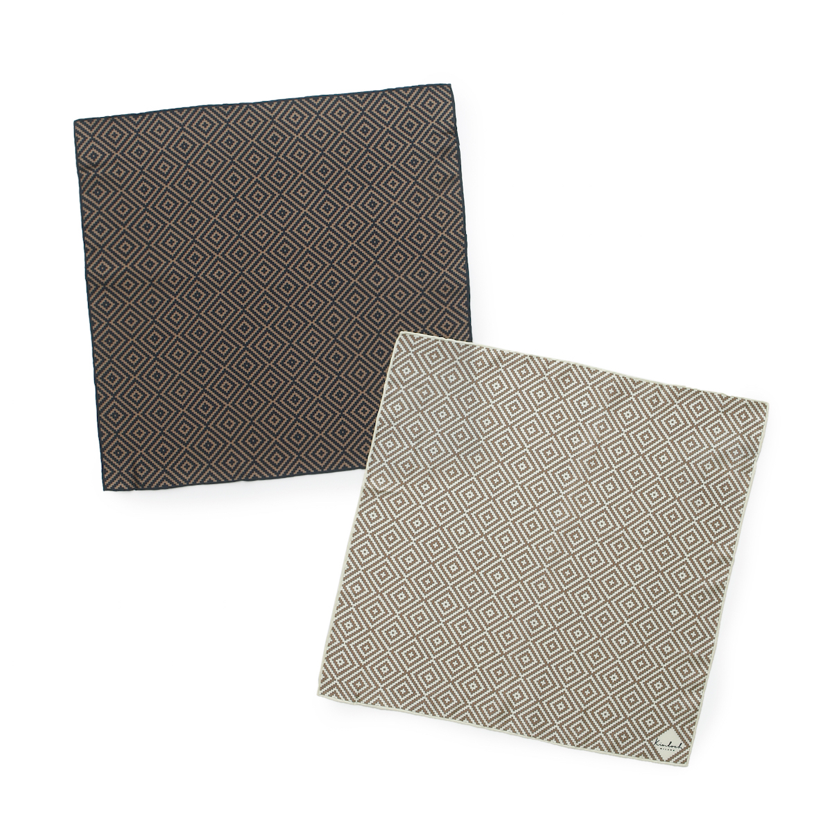 幾何学柄の様なプリントが印象的なこちらのチーフ。