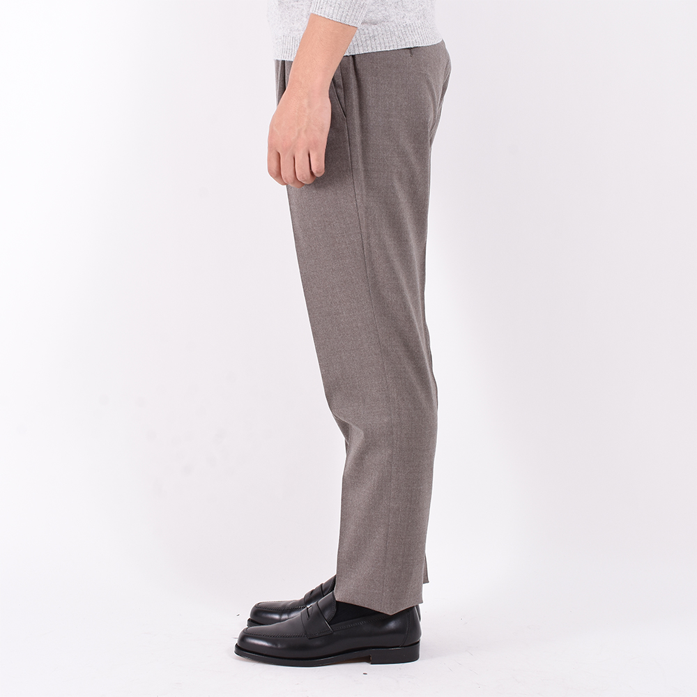 ・PTを代表するモデルである"GENTLEMAN FIT"はドメニコ・ジャンフラーテ氏がディレクターとなって生み出したもの。しっかりと確保された股上寸によって腰廻りのホールド感が良く、プリーツの入ったやや余裕ある腰廻りとテーパード感あるシルエットが特徴です。このような絶妙バランスがゆえ、もちろんジャケットに合わせられ、スニーカーにも合わせられ、どんなスタイルでもエレガントさをキープできるのです。