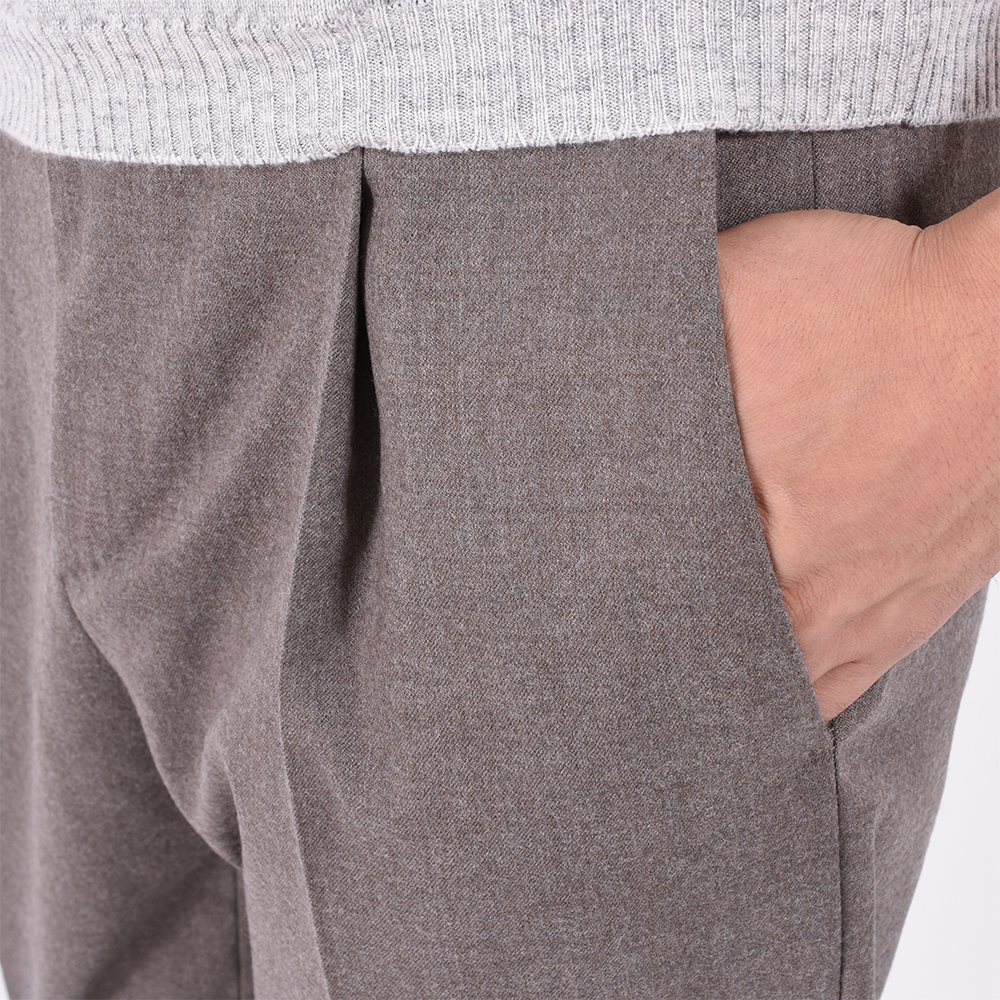 非常に綺麗な脚のシルエットを出してくれるGENTLEMANFITは最近と言っても過言ではないです。ワンプリーツですので腰回りに少しゆとりはありながらも、裾口に向かってしっかりとテーパードが効いていて脚を細く見せてくれます。柔らかなフランネル生地ですので、秋冬には重宝するのは間違いなしの一本ですので、全色まとめ買いしても良いくらいお勧めです。サイズは普段選ばれているサイズでよろしいかなと。
