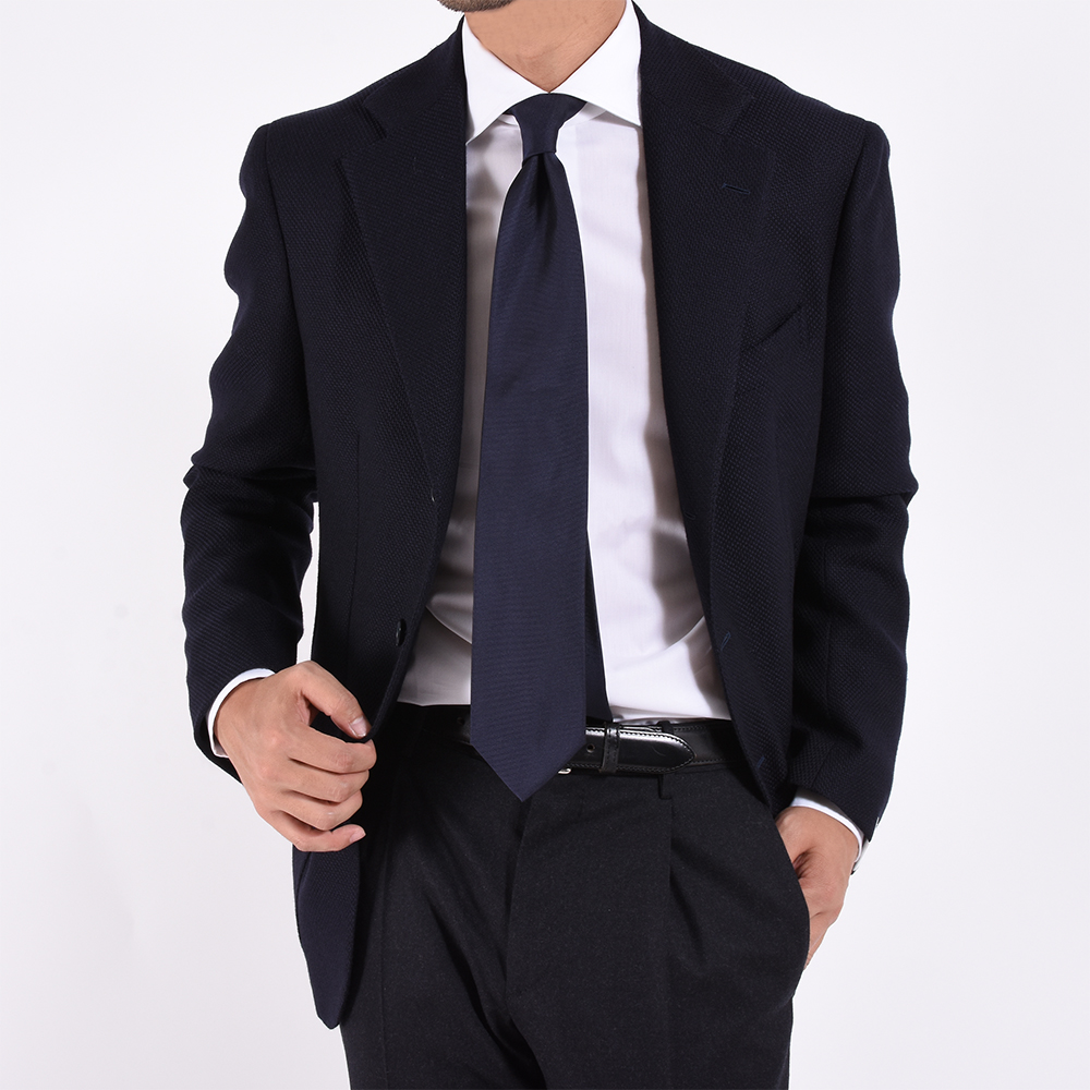 普段、ショップでお取り扱いしている他のブランドのシャツのサイズは38ですが、こちらのブランドはボディが少しゆったり作られているので、サイズ37を着用。首回りは、肩、ボディは全てピッタリでした。そして、ヨークにはほんのりとギャザーが入っている為、背中の可動範囲が多く取る事ができ着心地はとても楽。タイドアップする時のシャツ選びなら、アヴィーノは間違いなしです。