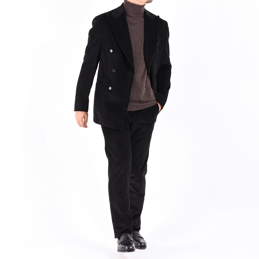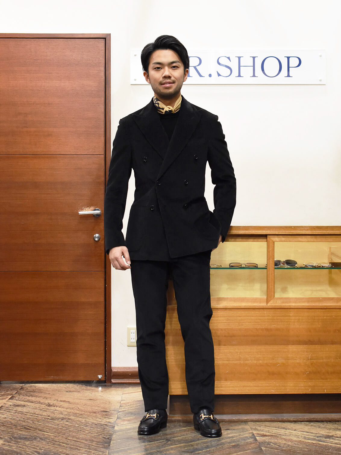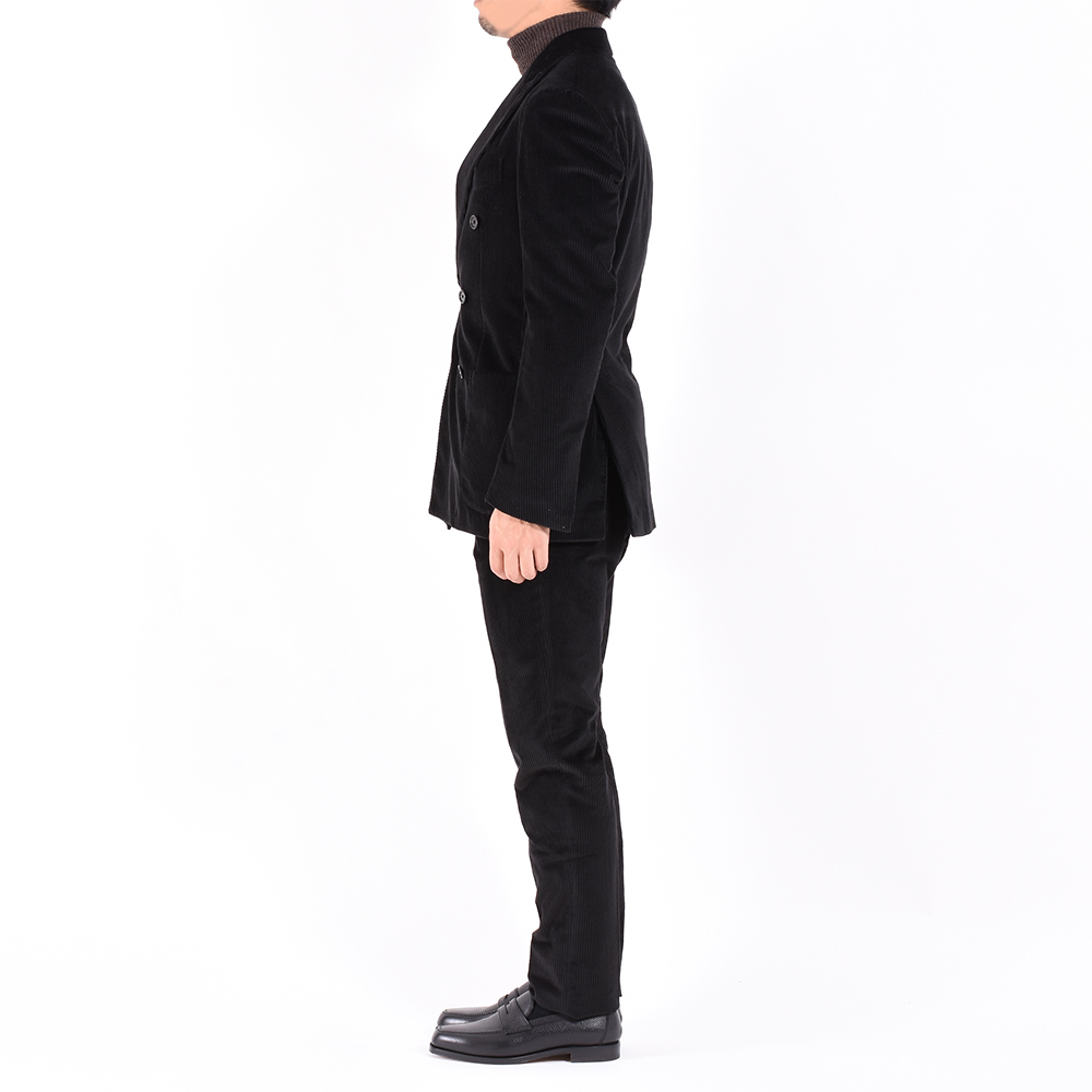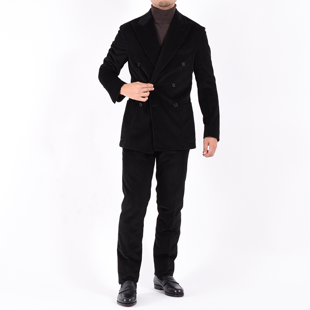 コーデュロイのダブルのスーツでありながら、パッチポケット仕様なのでスーツでの着用はもちろん、ジャケット単品での使用もでき、汎用性は抜群であるこちらの1着。タイドアップはもちろん、インナーにニットを着用し足元はスニーカーを合わせたラグカジスタイルも◎今期コーデュロイのスーツをお持ちであると、非常に使えるでしょう。