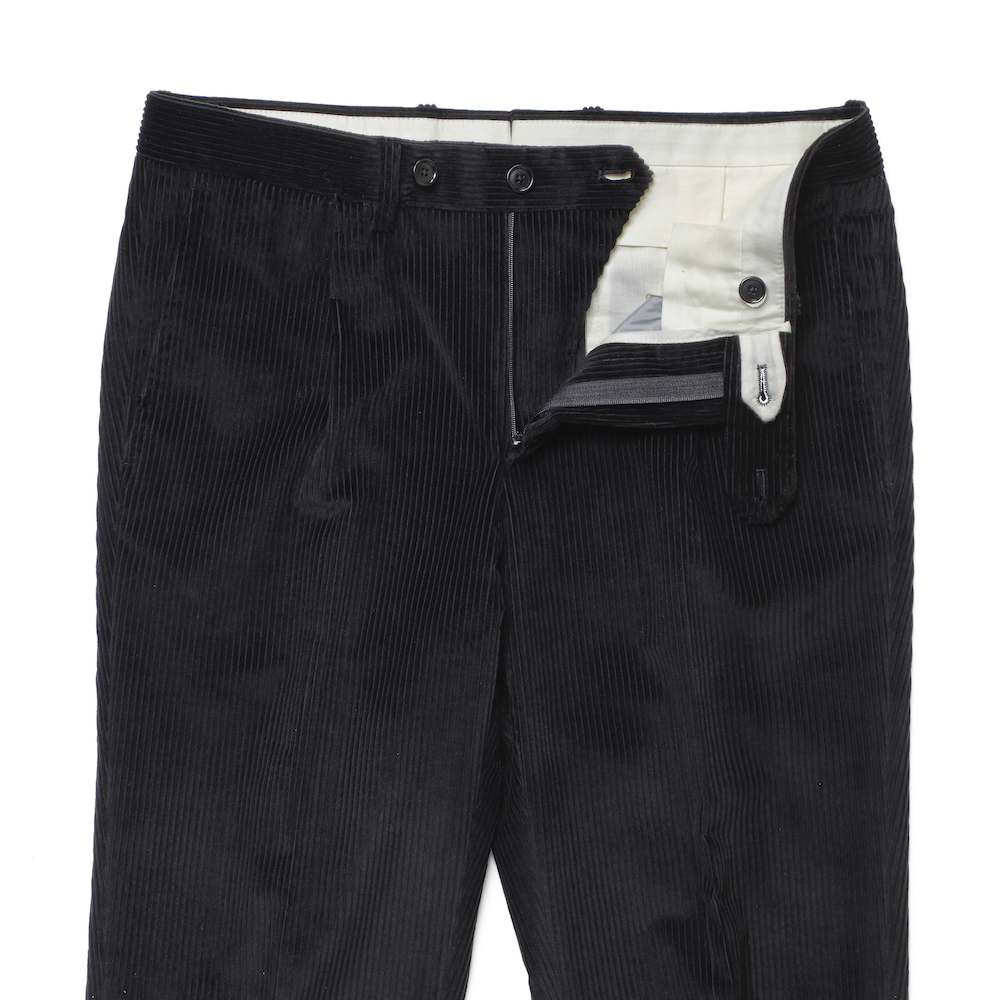・生地はカシミア混のコーデュロイ。太畝からもたらされる光沢感、カシミア混によるしなやかさが特徴で実に上品な生地感です。目付は325グラム。ブラックとキャメルの2色にてご用意しました。