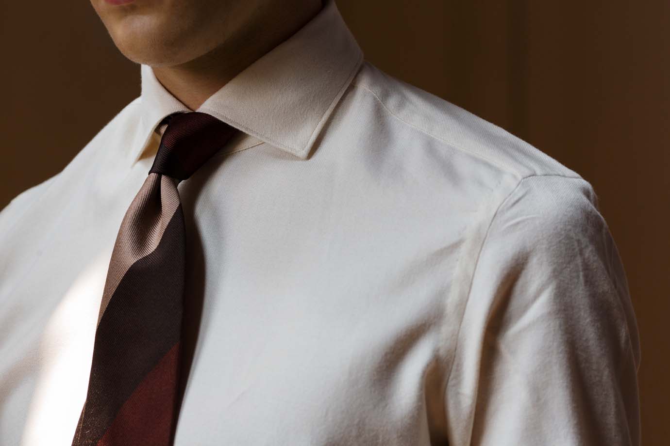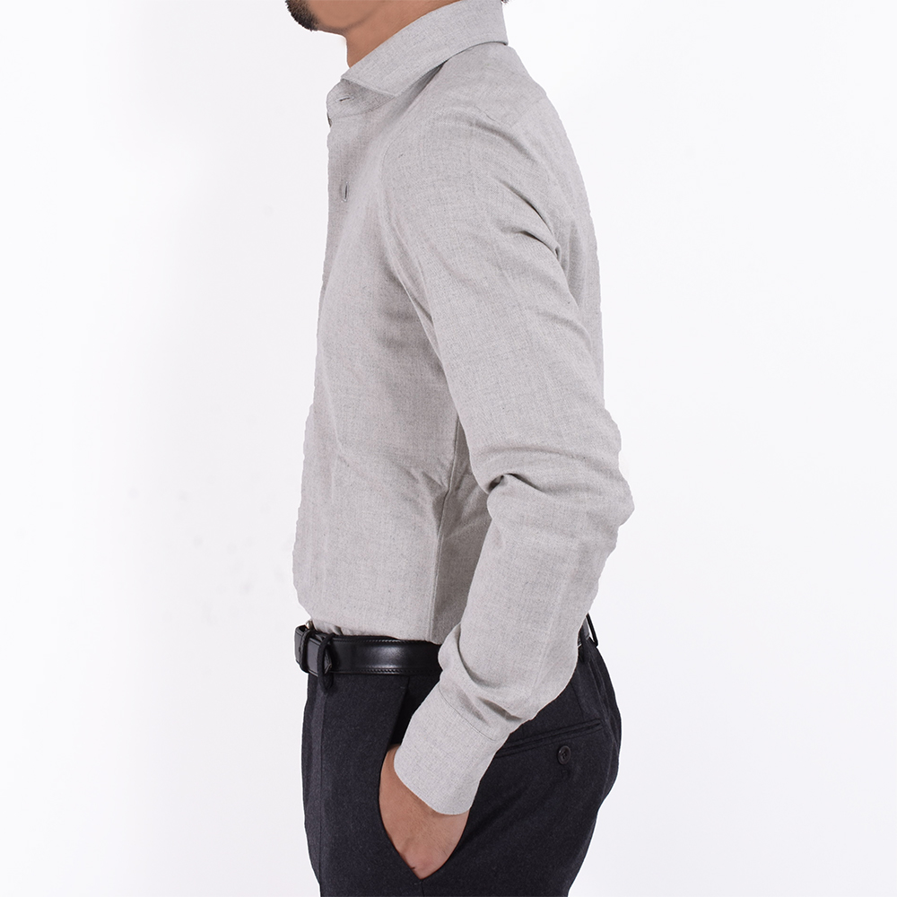あたたかく優しい肌触りのコットンネルは着用していて非常に気持ち良くて楽です。ジャケットスタイルの際にウールタイやニットタイを合わせると、より季節感が出て◎もちろん、ノータイでもカッコいいです。細身体型でサイズ38を着用しピッタリでした。普段選ばれているサイズでよろしいかなと。