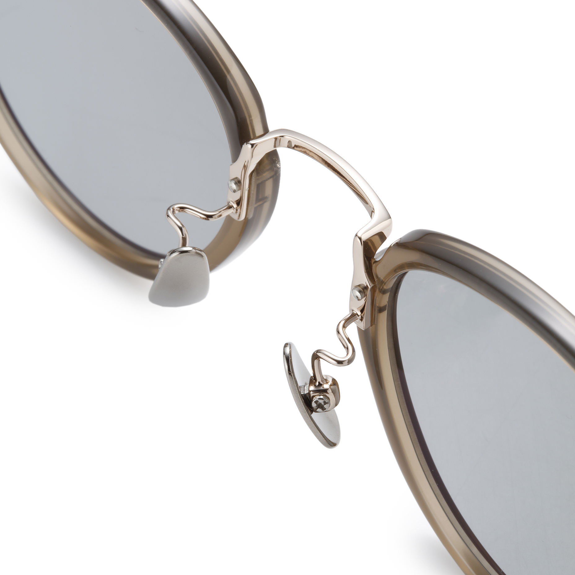 ・メタルブリッジと一体になっているノーズパッドは適度な高さがあり、掛けた際の位置を高く保てます。また、チタンテンプルとプラスチックフレームなので非常に軽い掛け心地が得られるとともに、洗練された印象を与えます。