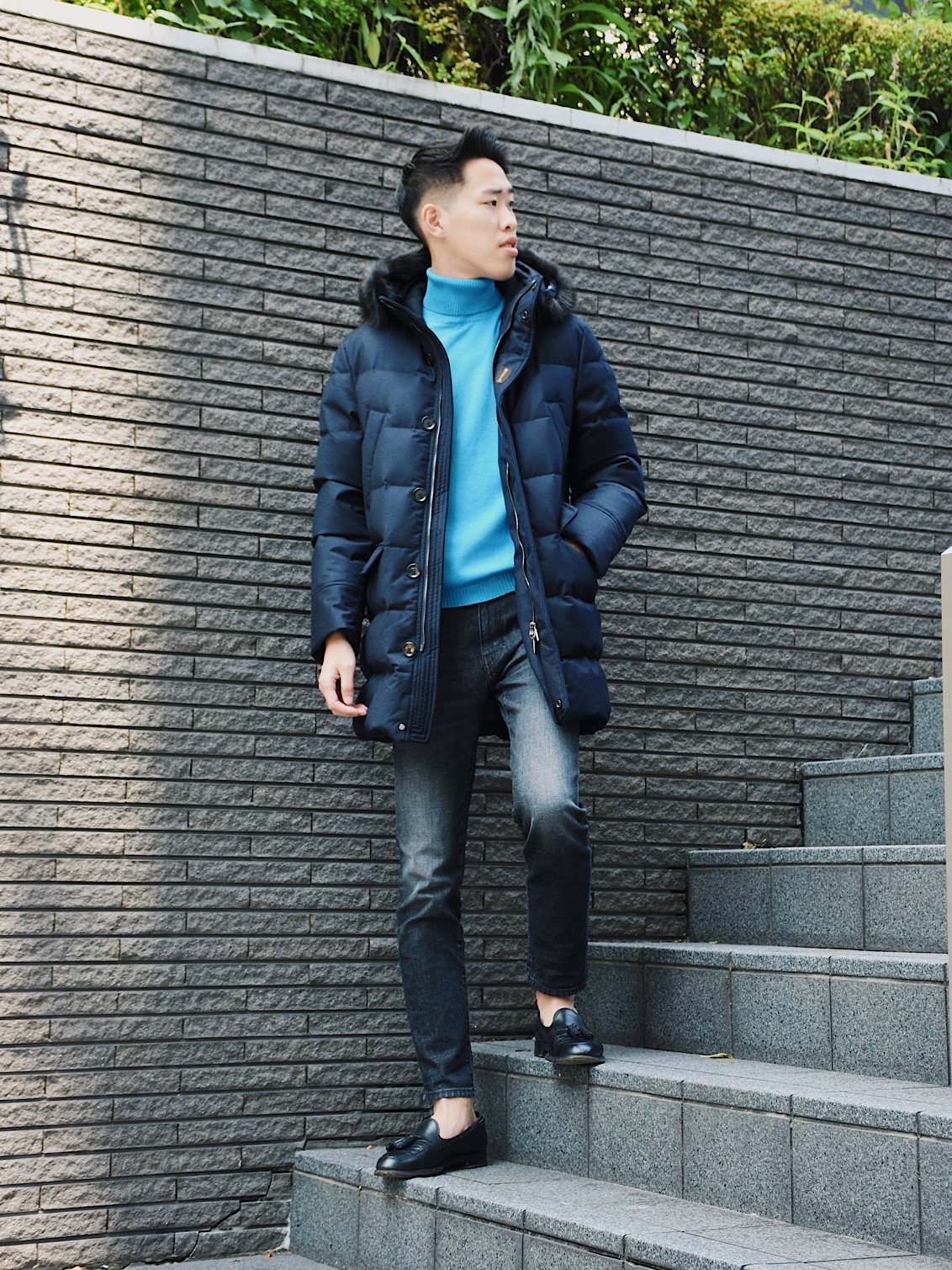 ・元々は幅広だった袖と裾のリブを細めにリクエスト。これによってクラシック感が薄まり、軽い雰囲気を実現。タートルネックについてはピッタリし過ぎないフィット感を目指し、リブ編みのテンションをほんのり緩めるよう別注しています。