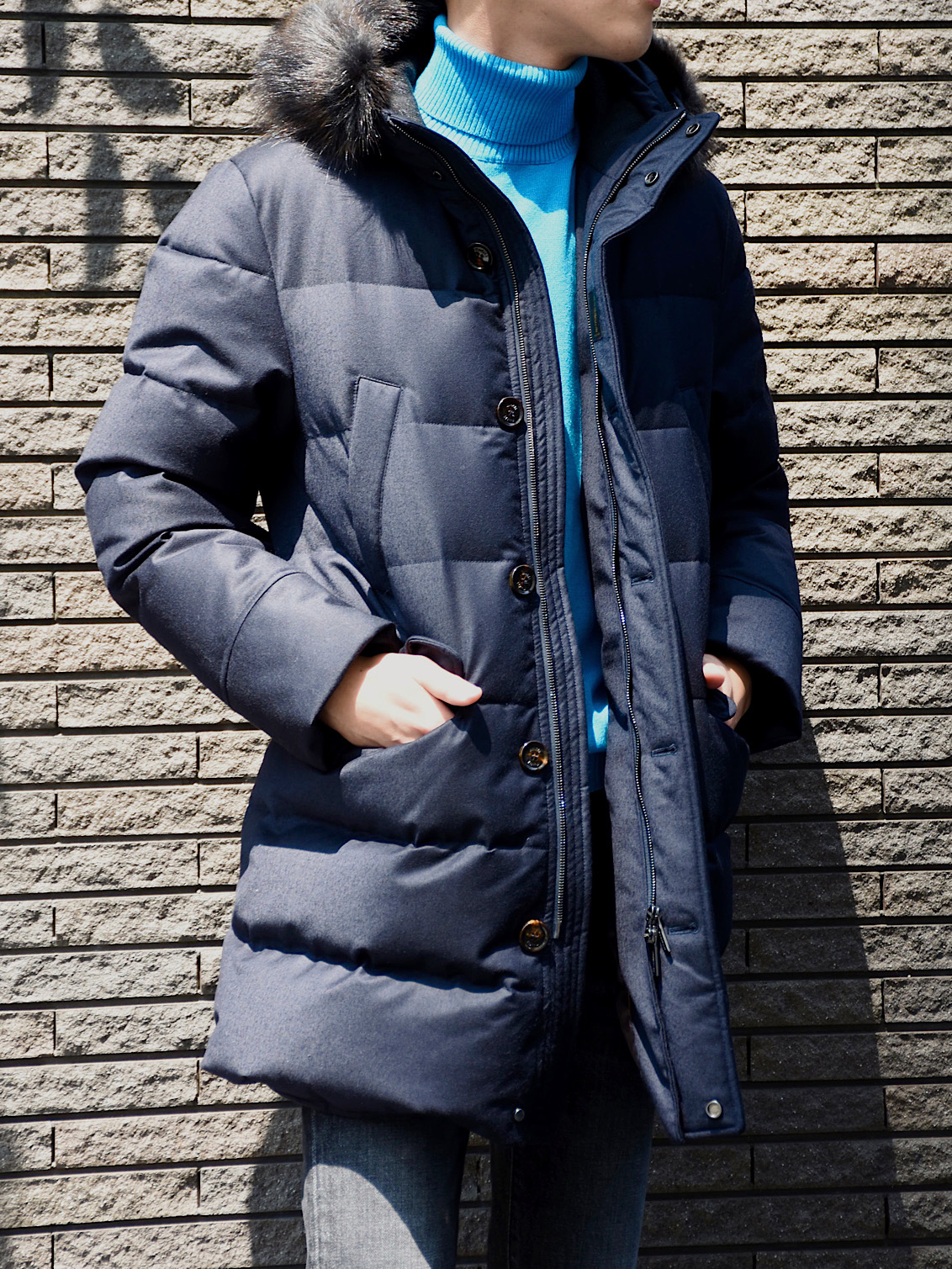 ・今シーズンはボディバランスも別注にてリクエスト!適度なフィット感が得られる肩幅とスリーブ、ほどよくゆとりを感じさせるボディ、袖丈や着丈も見直し、今の時流に合わせたバランスとフィッティングを目指しました。スタンダードでリラックス感ある美しいシルエットはBR自信の一着です。