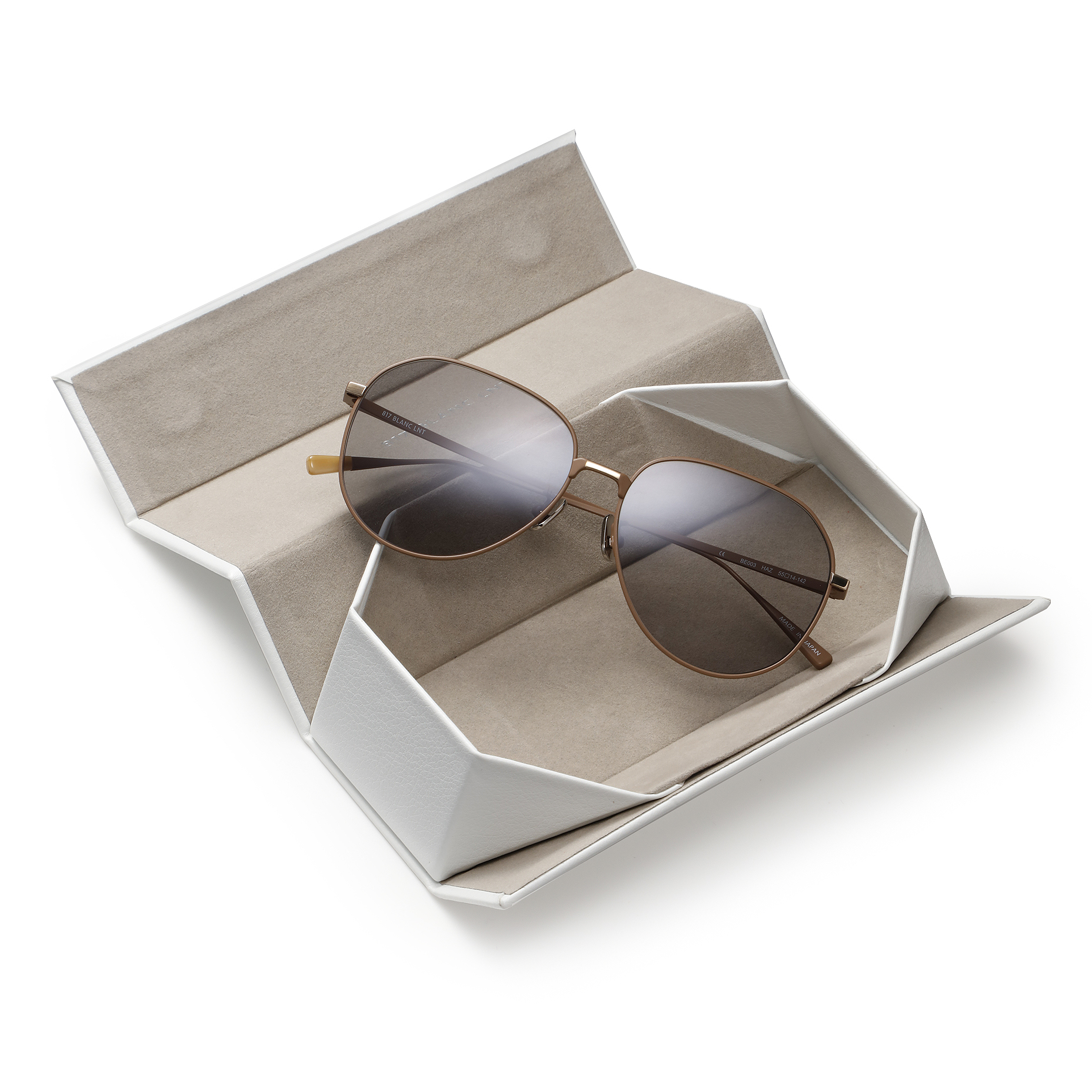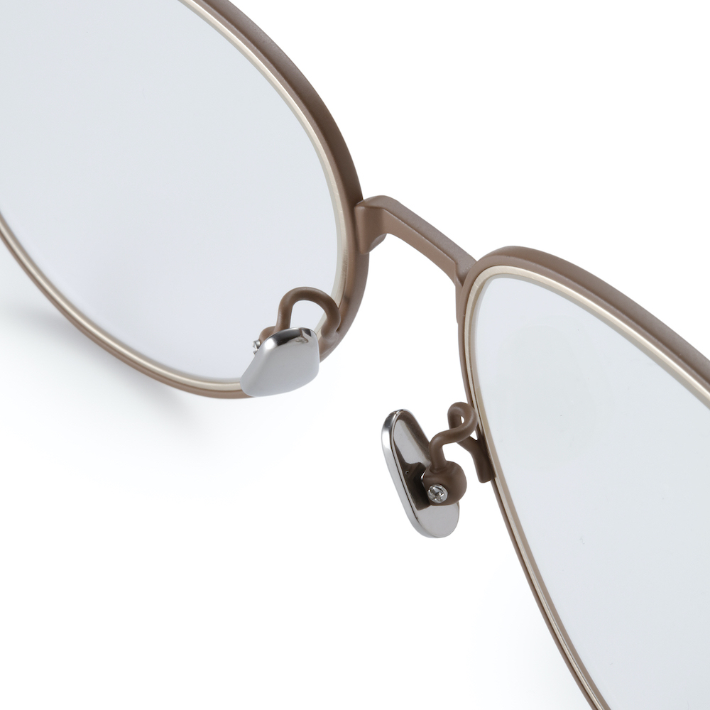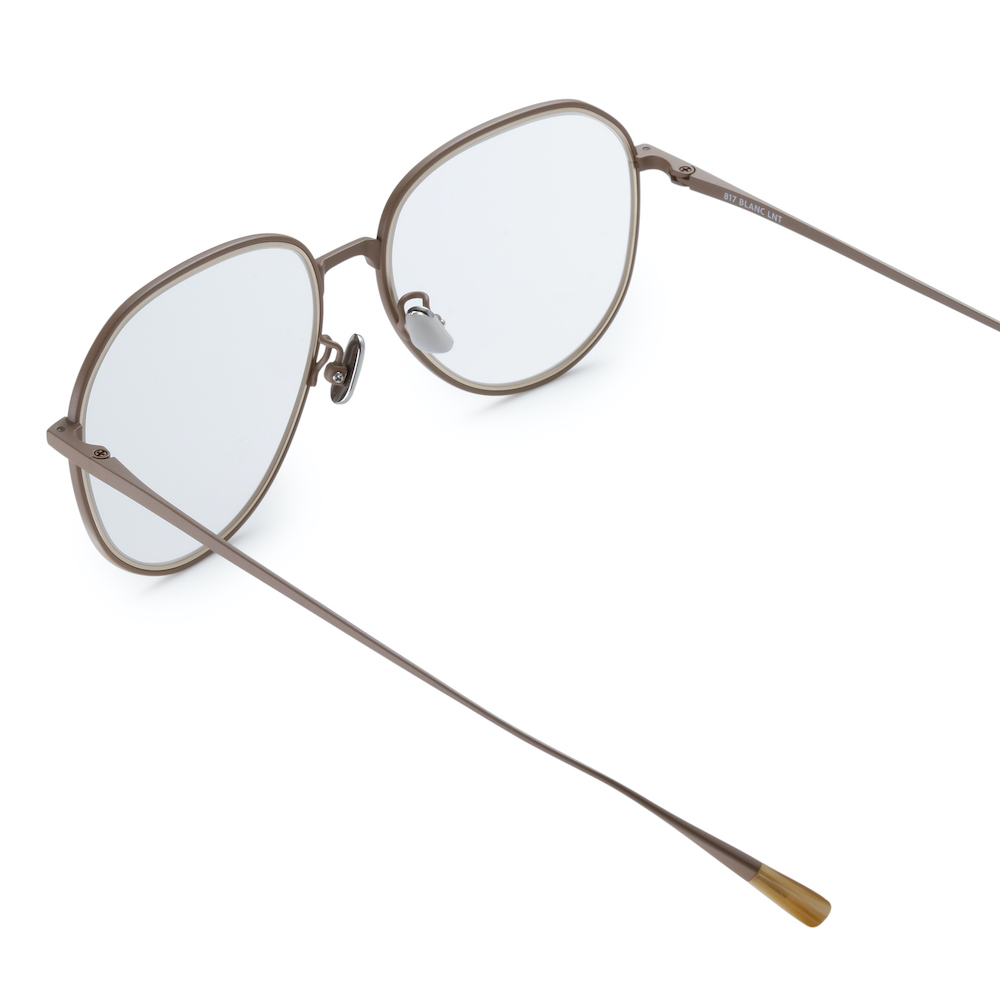・「BLANC..(ブラン)」流にアレンジを加えたディアドロップタイプ。レンズの膨らみを抑えて小ぶりに調整し、ティアドロップ感の強いゴールドやシルバーメッキではないフレームカラーを採用することでスタイリッシュに仕上げられています。