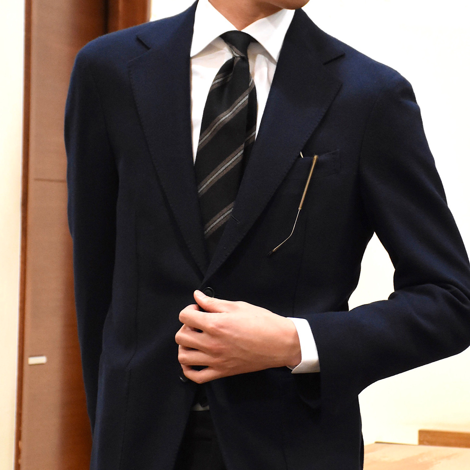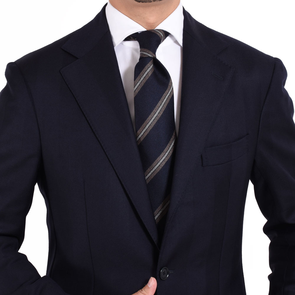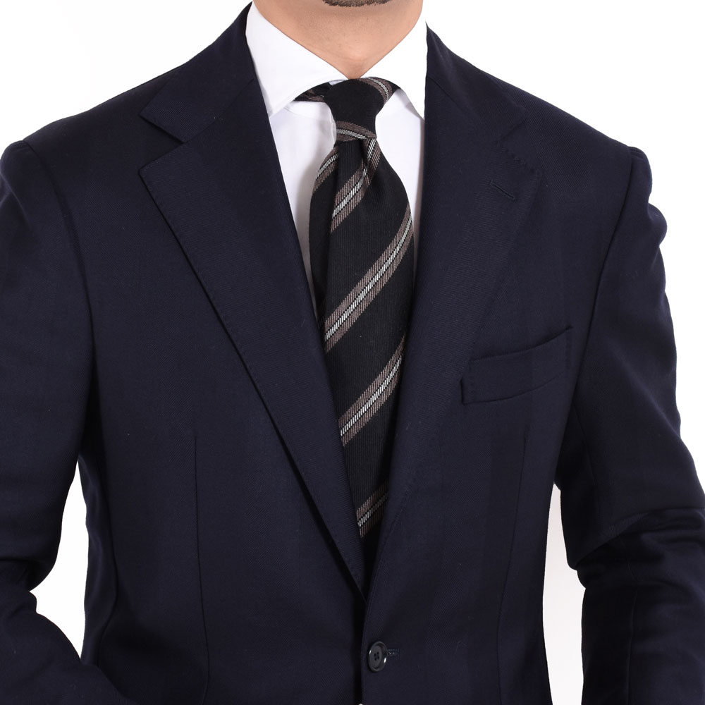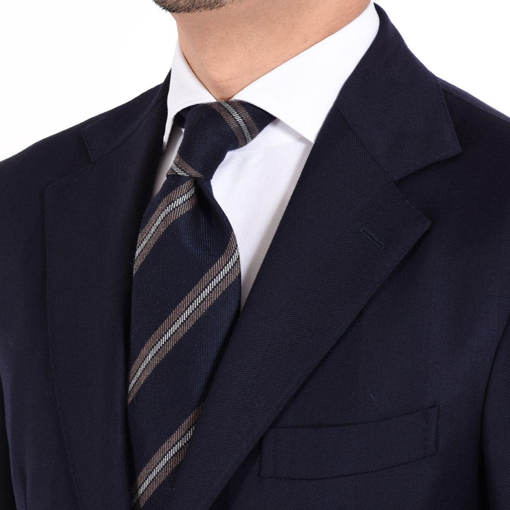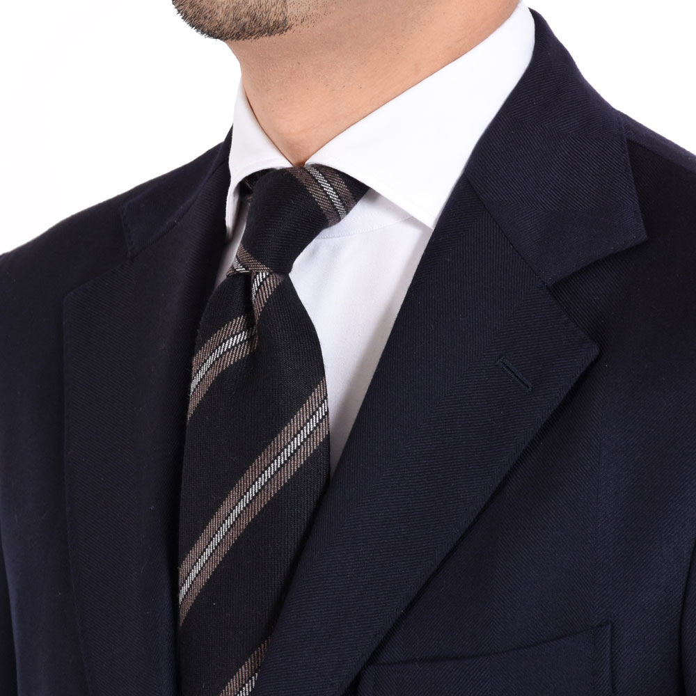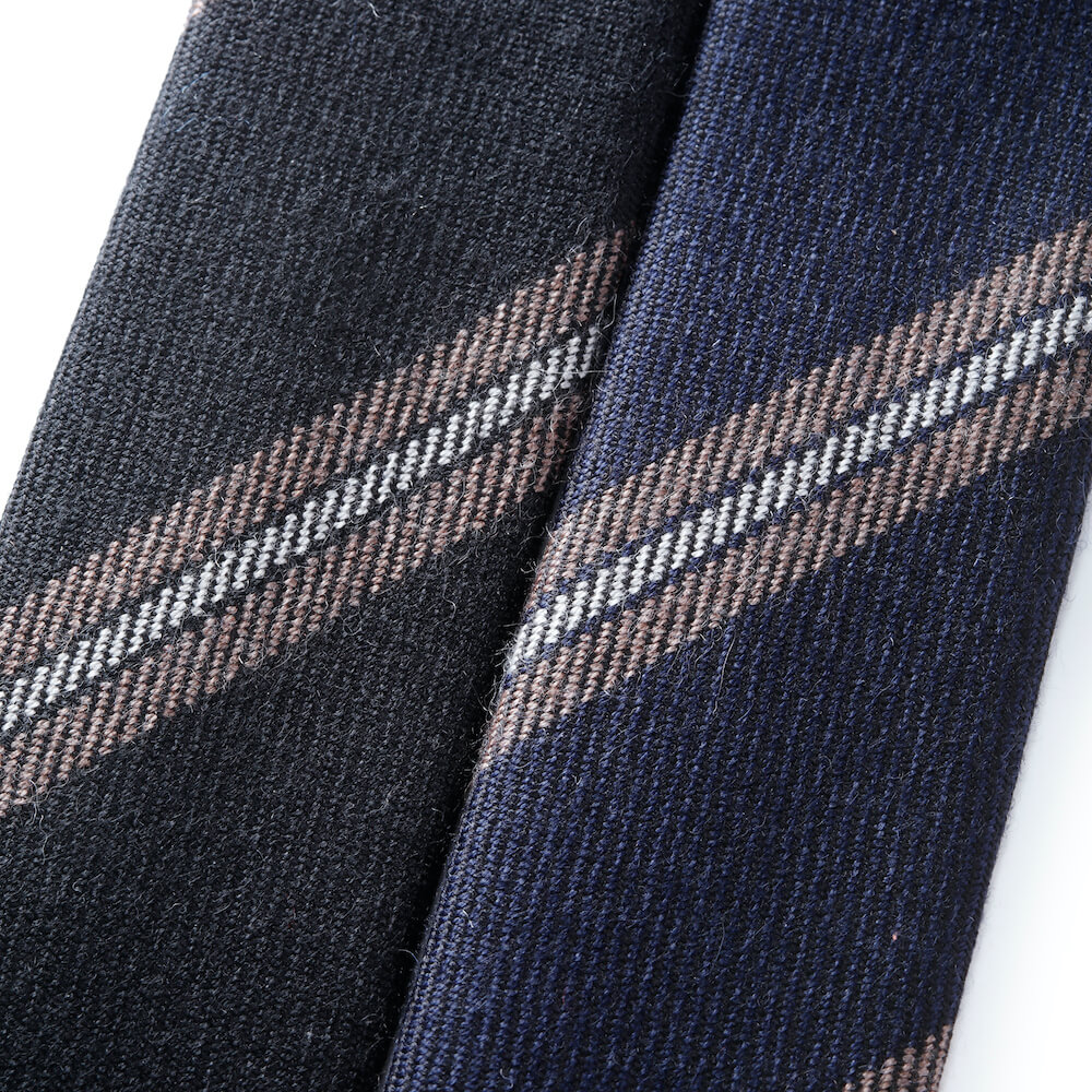 ・艶やかなシルクタイはもちろん良いものですが、季節の深まりとともにVゾーンに温かみを加えられれば洒落っ気の度合いが上がるというもの。ウール&カシミアのタイは、秋冬の装いに欠かせません。ふんわり柔らかな質感が秀逸です。