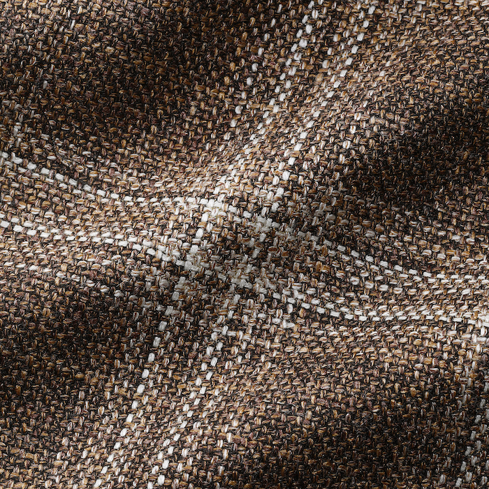 ・まるでグラデーションのように見えるブラウン系のチェック生地。ホワイトを効かせる事でモダンな印象を醸しています。