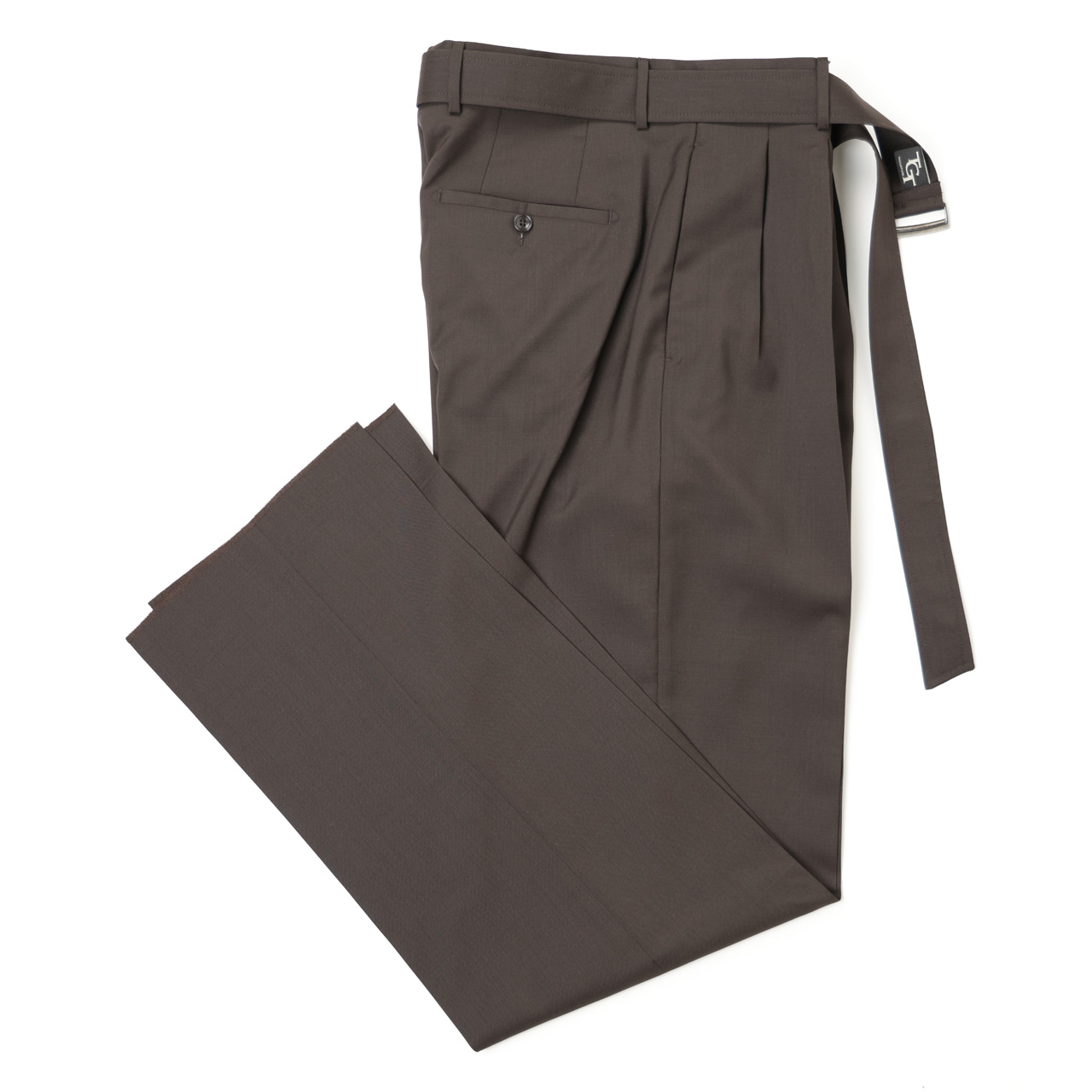 ・「TAGLIATORE(タリアトーレ)」のウエストシャーリンゴム&ドローコード付きのリラックスパンツは1プリーツ。腰廻りとワタリはほんのりゆとりがありつつも、美しくテーパードしたシルエットによってスッキリとした印象を与えます。