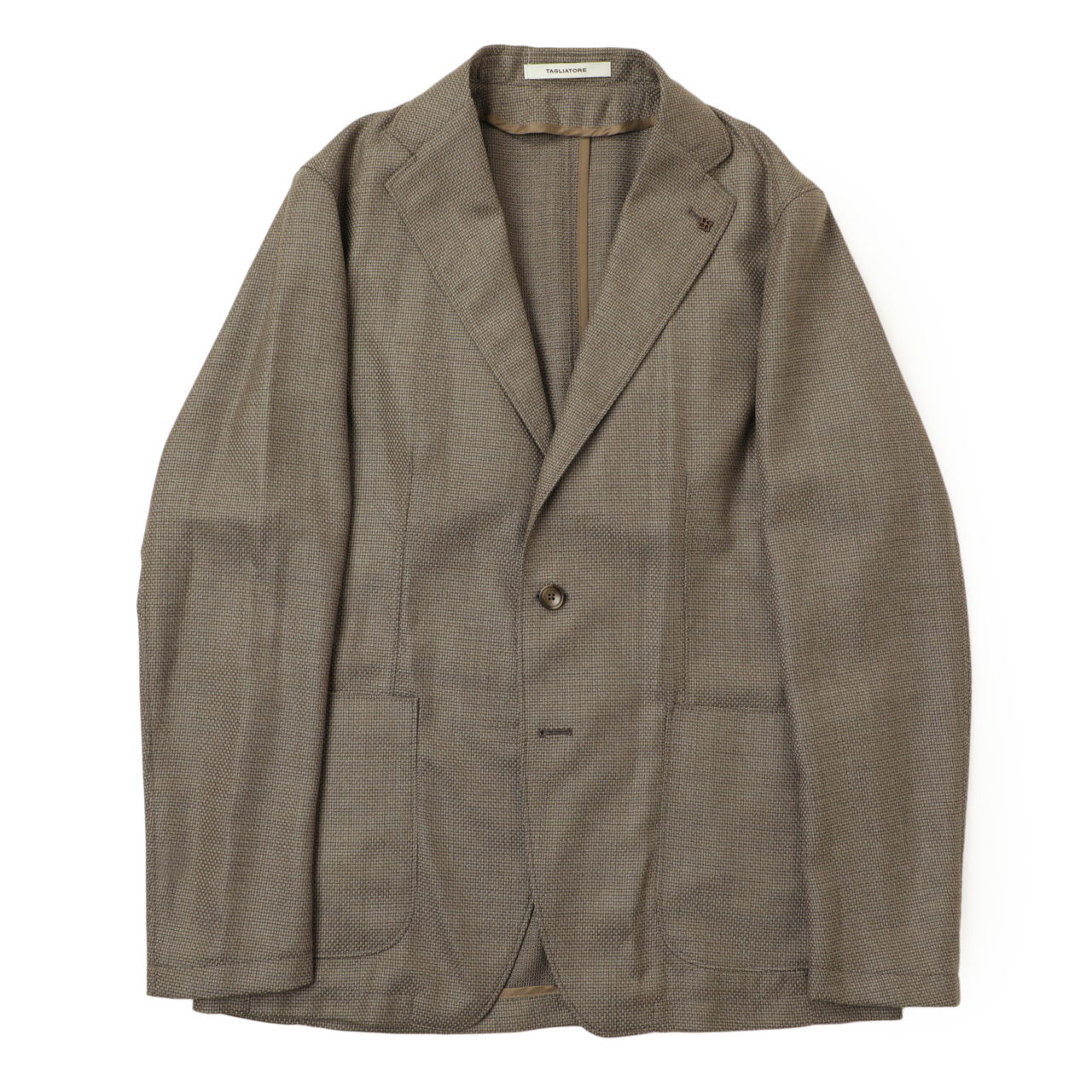・モデルは「TAGLIATORE(タリアトーレ)」が誇る軽量仕立ての"DAKAR"。形状保持とボリューム感を出すためにジャケットのキモとも言える襟、肩、バスト部分以外は一枚仕立てです。見た目は完全にジャケットなのに着心地はシャツ並みという軽量感をお楽しみ頂けます。