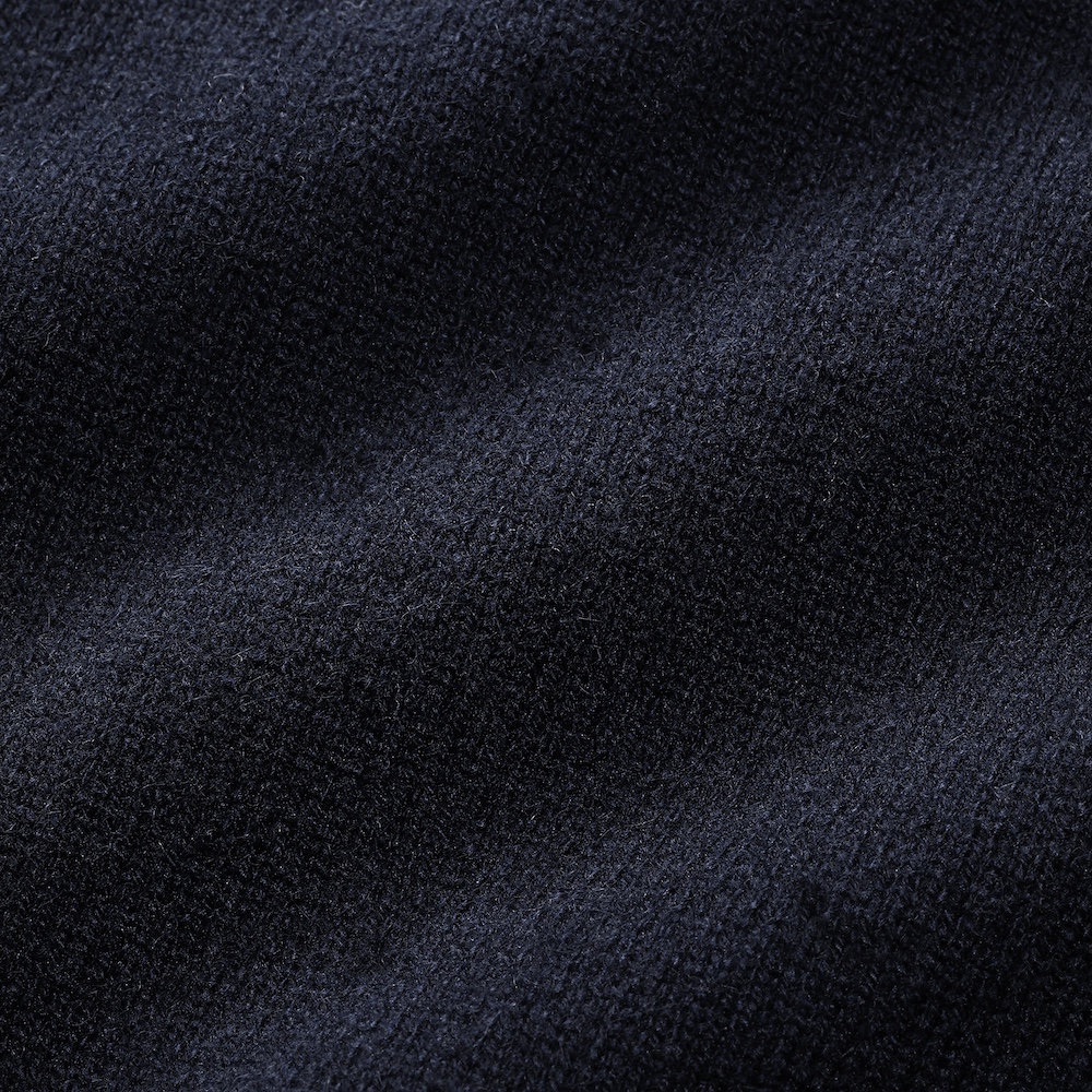 ・Kid Cashmereならではの軽く柔らかい糸を平編みにすることで、しっとり柔軟性に富んだ編み地に。秋口から春先まで着られる程よい厚みです。