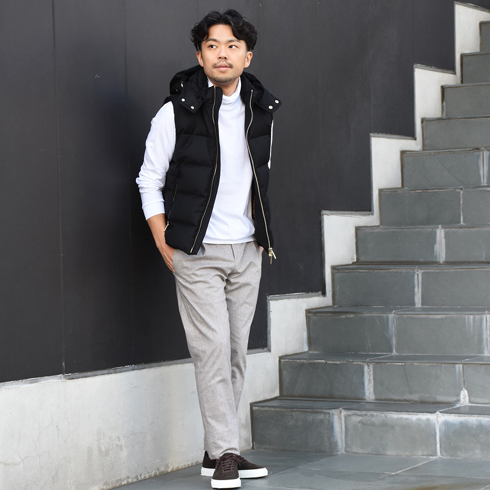 ・ほんのりと起毛感があり、温かみを感じさせる生地はコットンフランネル。ストレッチが効いており、ハリ感がありながらも肌当たりの良さが特徴です。足を通した際に冷んやりせず、暖かい生地感はまさに秋冬向け。上品な色合いからはさりげないラグジュアリー感が漂います。全3色(チャコールグレー/ネイビー)のラインナップ。