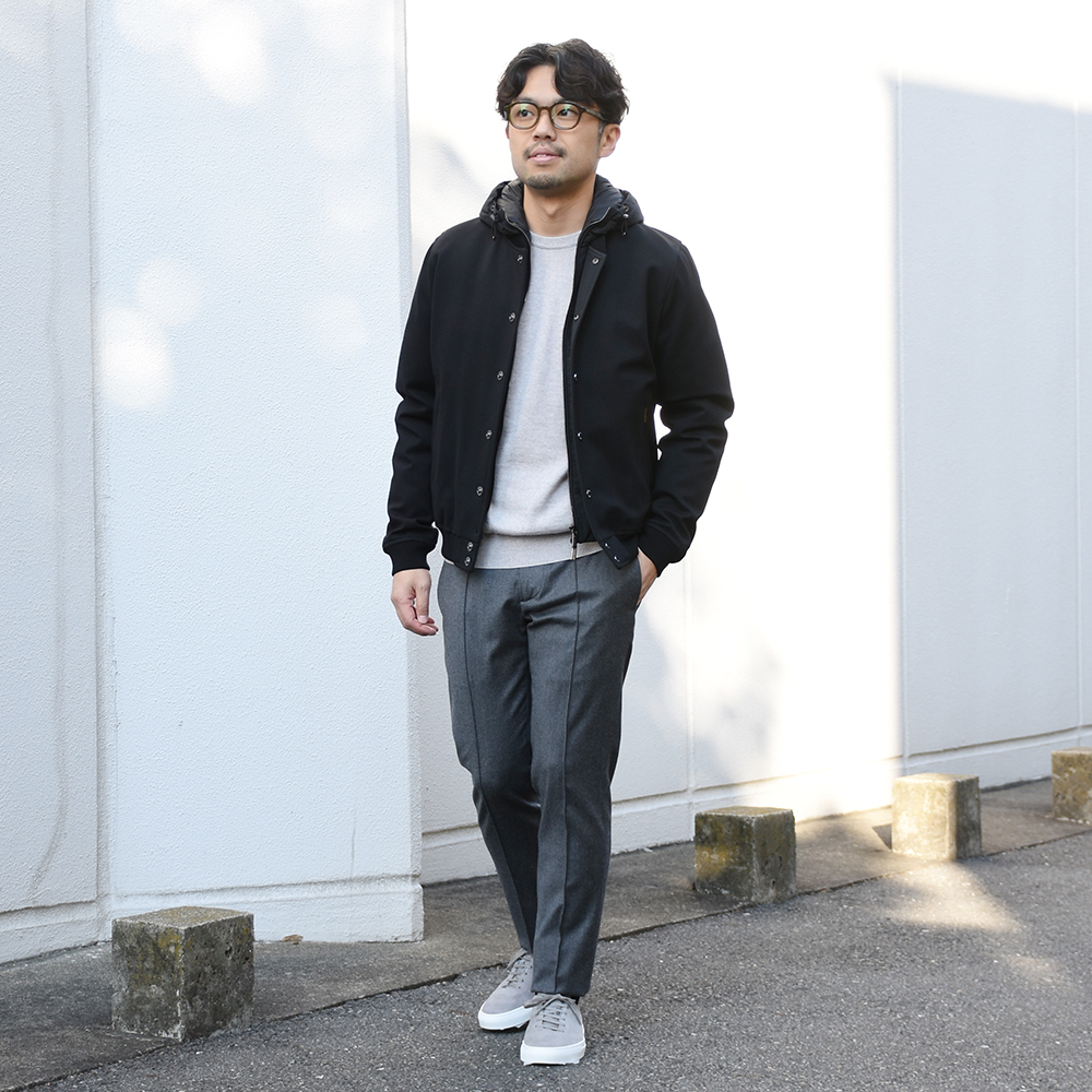 デニムからウールパンツまで幅広く合わせられますが、個人的にはスニーカーとのコーディネートが特におすすめです。