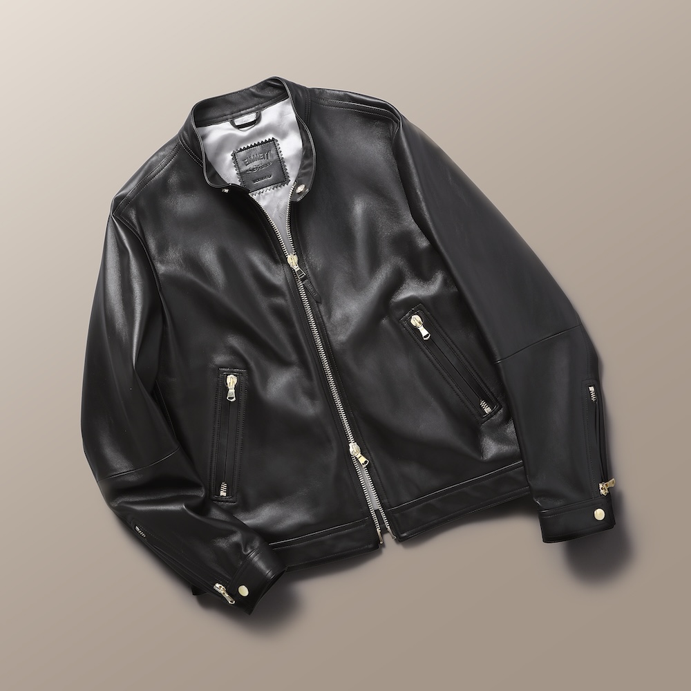 ・特徴的なのは台付きの小ぶりな襟。台襟があることでジャケットのインナーとしても収まりが良く、一枚で着ても小ぶりな襟はシャープな印象を与えます。