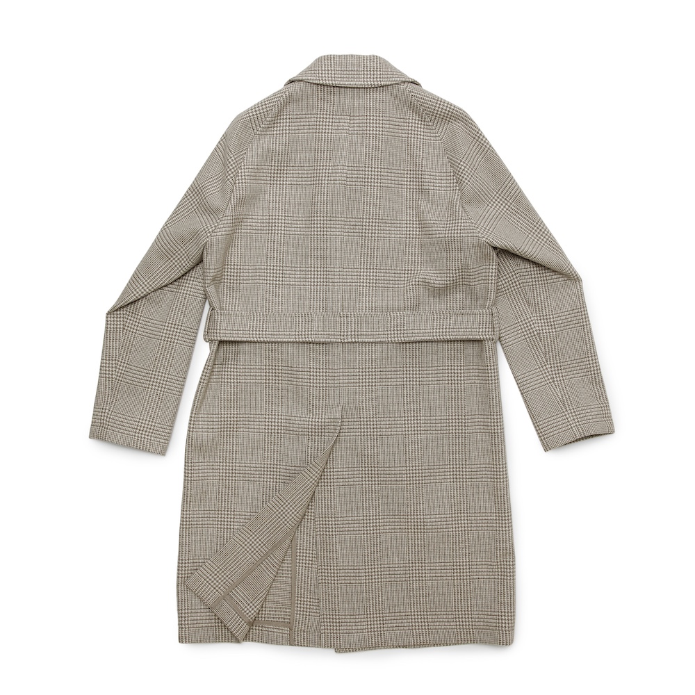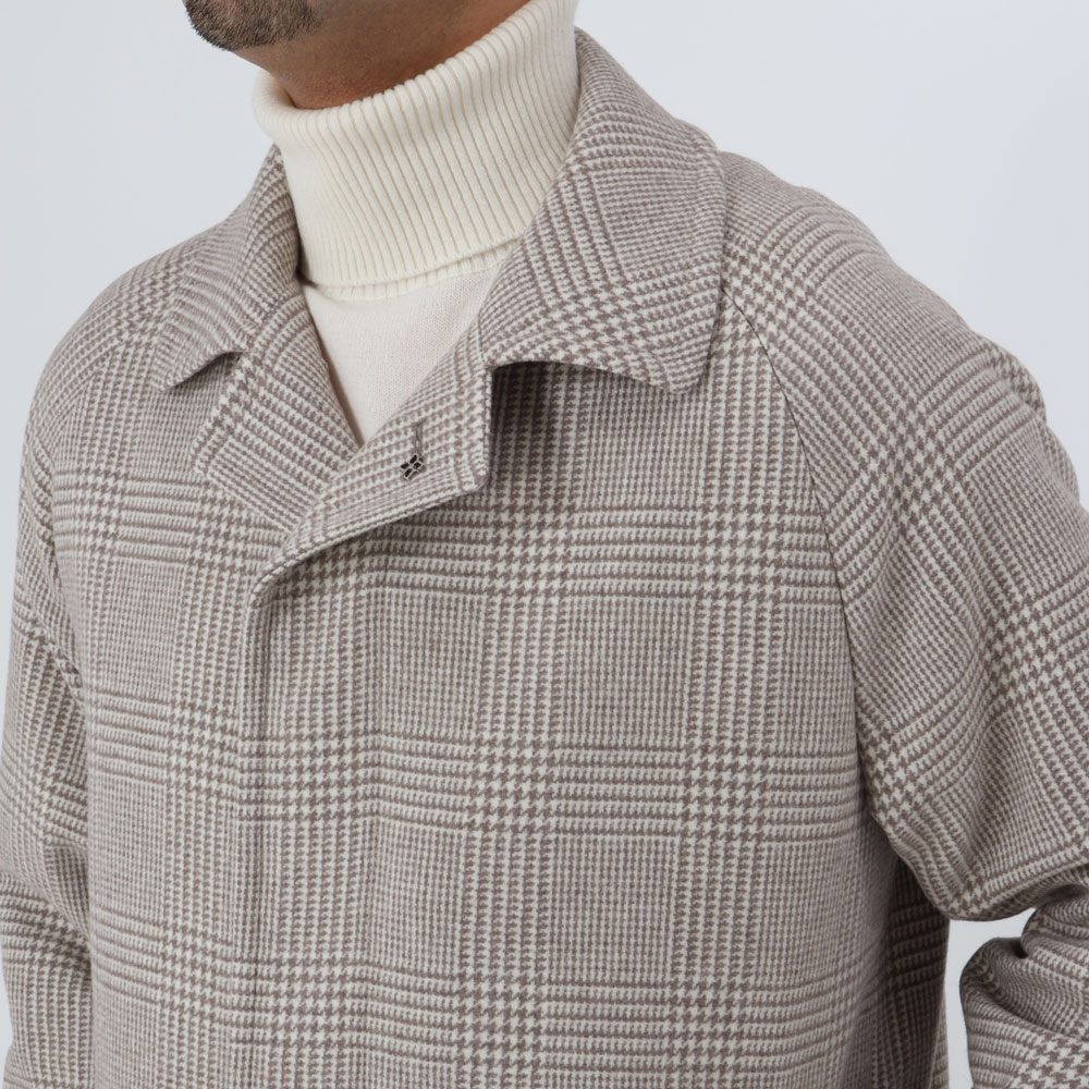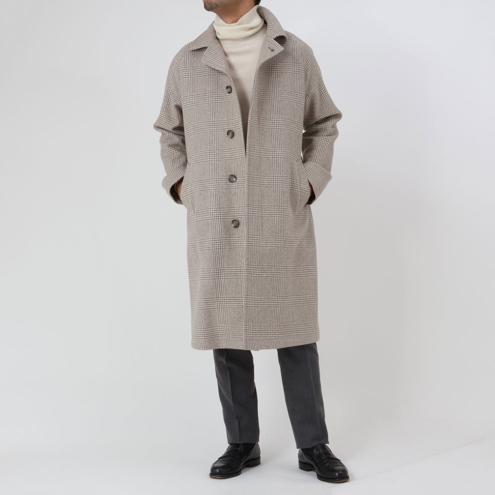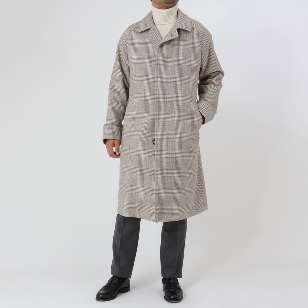 ・大柄なグレンプレイドは、グレージュとオフホワイトが組み合わされた色合いで実に洒脱。土臭くならず、着る人を柔らかく見せてくれます。