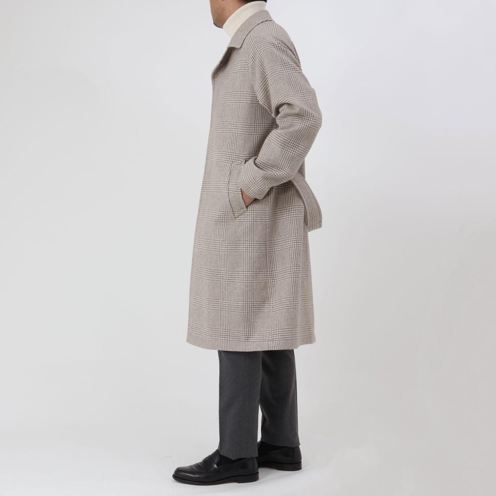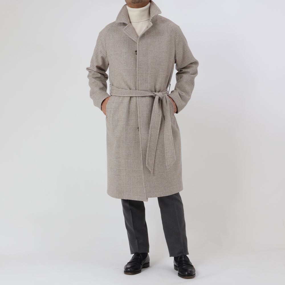 ・ラグランスリーブ、フライフロントとベーシックなデザインのバルカラーコートながら、それに加えられたベルテッド仕様が「TAGLIATORE(タリアトーレ)」らしいところ。ウエストを絞ってグラマラスに見せることはもちろんのこと、無造作に腰ポケットに入れたり、ベルトがあるだけで着こなしの幅が広がります。