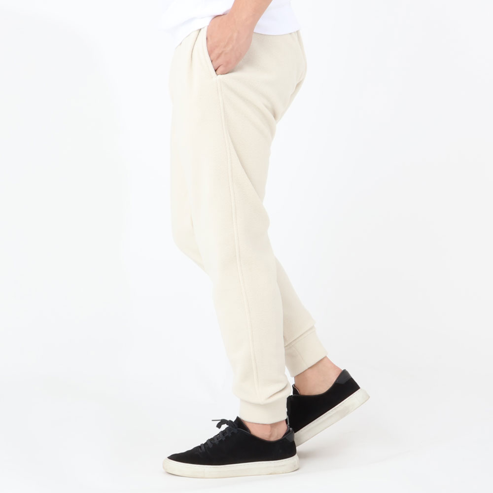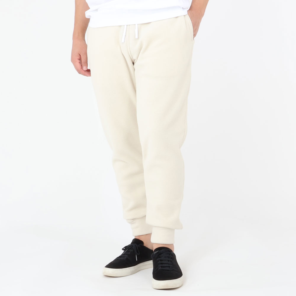 一般的なフリースに比べてキレイ見えするような生地感とシルエットはさすがANTICIPOだなと思います。生地は春先まで着用できるくらいの厚さです。サイズ44を着用し股下がやや余るほどのサイズ感。股下詰めをご希望の場合はリフォームを行うことですっきりと穿けます。