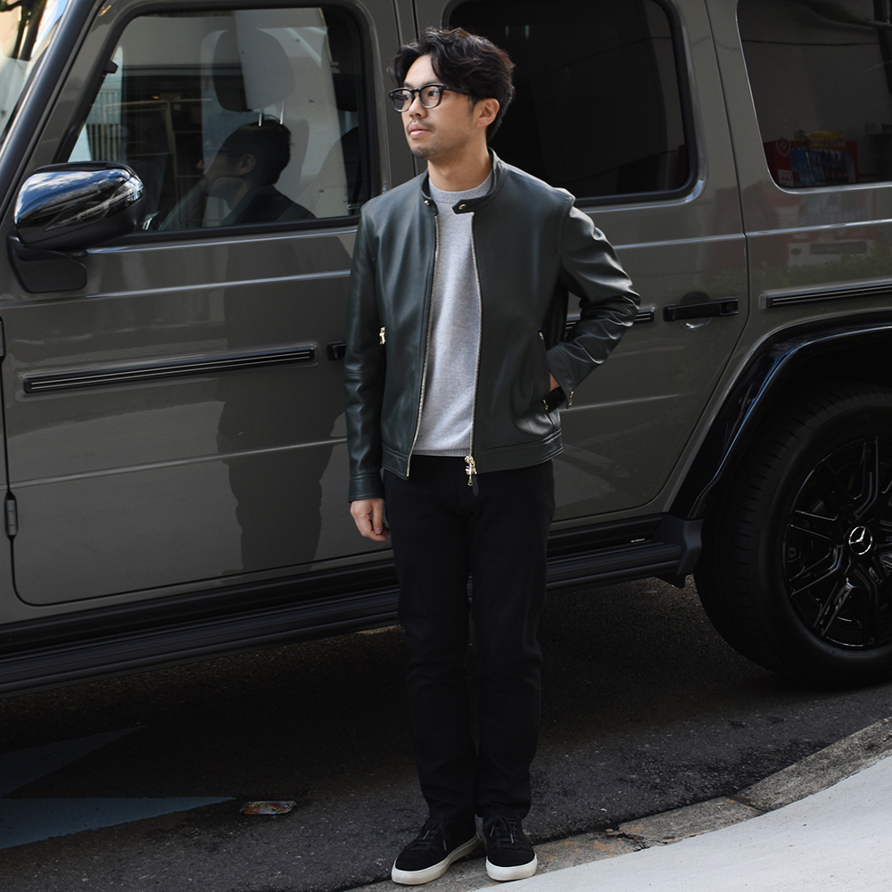 ・また単純にボディスペックをユルくしただけではなく、袖丈と着丈を調整し、バランスを整えています。その結果、今までにはなかったリラックス感あるライダースの着こなしが楽しめる一着に仕上がりました。