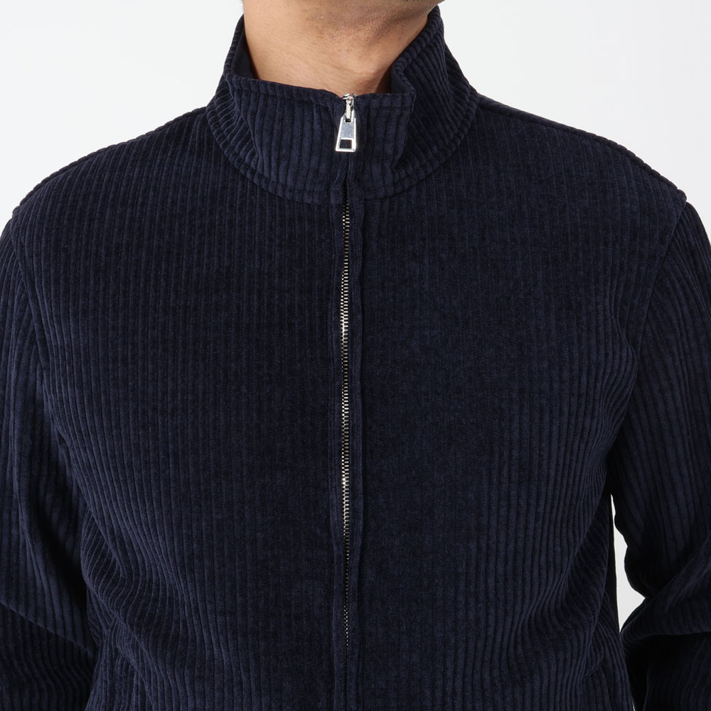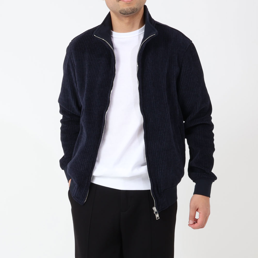 ・スポーティなデザインではあるものの、大人でも十分に着られる程よくリラックス感ある洗練されたシルエット。ジップをトップまで上げた際に首回りにゆとりが生まれ、抜け感が演出されるのがこのトラックジャケットの特徴です。シルエットにニュアンスが付けられるダブルジップアップ仕様。