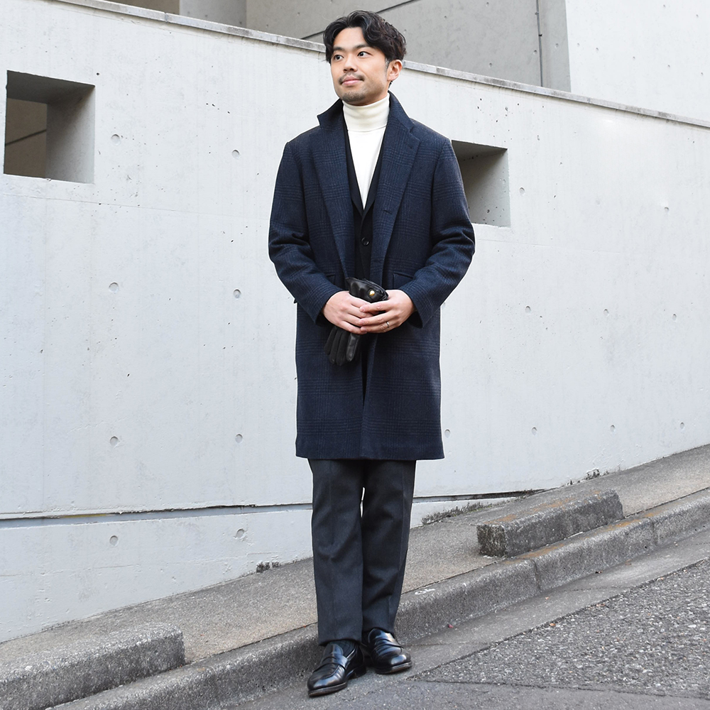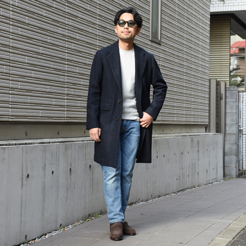 ・以上のデザイン/ディテールにより、ドレッシーなスーツからパーカーやリブパン、スニーカーといったスポーティなアイテムまで無理なく合わせられる現代的なチェスターに仕上がりました。