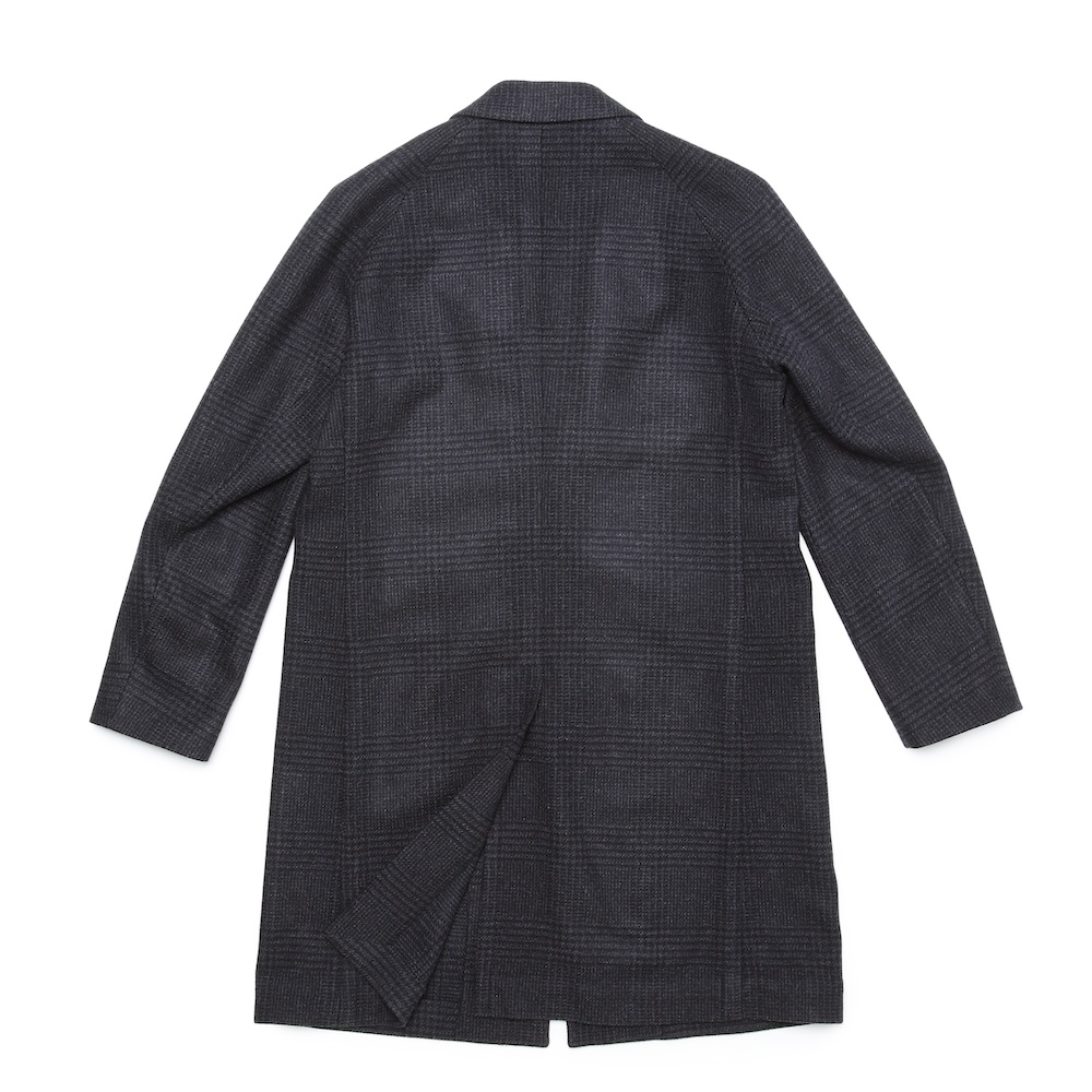 ・このオリジナルコートで最大のポイントは、スプリットラグランスリーブ。バルカラーを始めとするカジュアルなコートやアウターの仕様であるスプリットラグランスリーブを敢えて取り入れました。