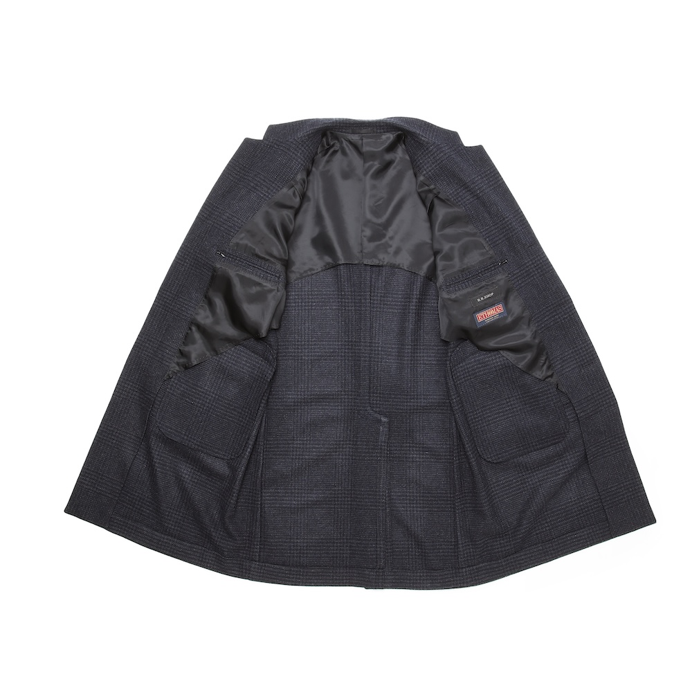 • フロントボタン3つ、背中半裏、袖裏あり、筒袖、フラップ付き腰ポケット2つ、ファスナー付き内ポケット2つ、スプリットラグランスリーブ、センターベント、B.R.SHOPロゴ入りMAINETTI製ハンガー / B.R.SHOPロゴ入りガーメントケースが付きます